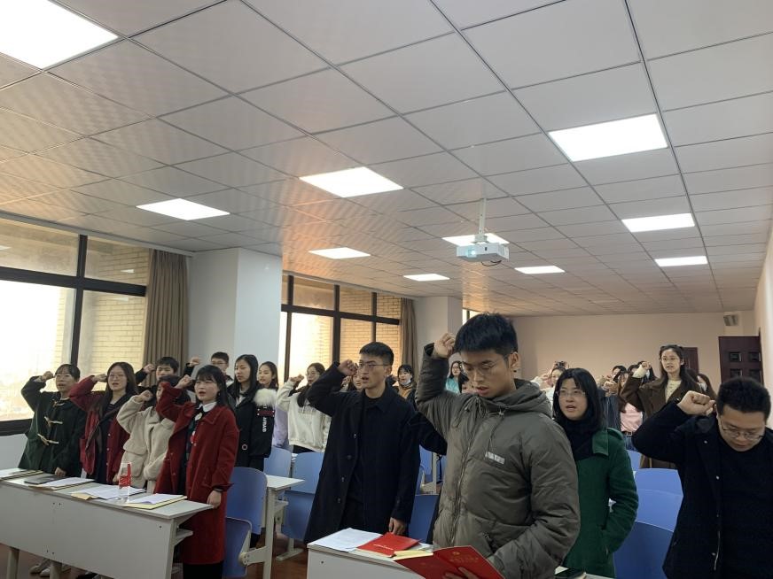 随后,11名新发展的预备党员同志依次表态,表明自己成为一名光荣的共产党员,坚持为人民服务的决心,最后,由支部成员孙伴澳同志带领支部全体成员面对党旗庄严宣誓,重温入党誓词,进一步坚定决心和信念。