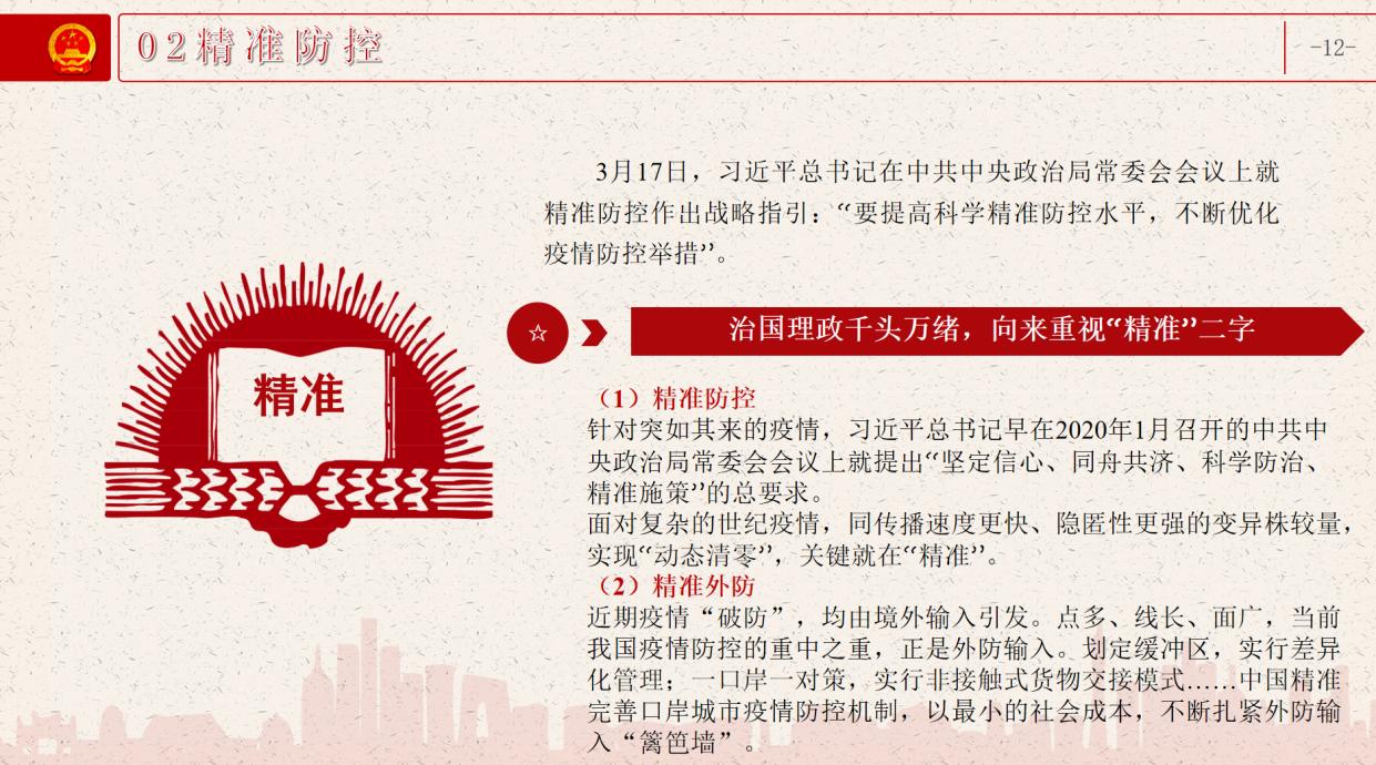 在第二部分“精准防控——努力用最小的代价实现最大的防控效果”中,我们掌握到近几年国家层面对“精准防控”的重视。“图难于其易,为大于其细”,是中国力量的集结,分级分层、有效协同、团结一心、共同抗疫。