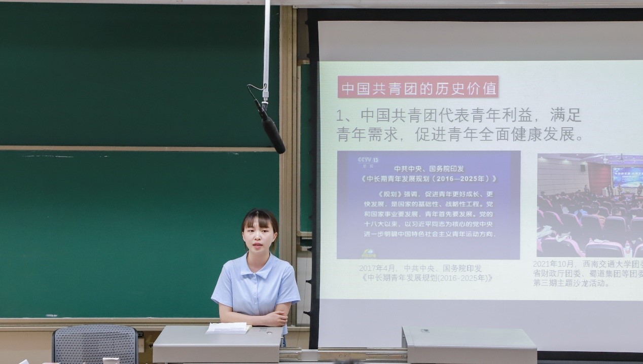 随后,刘丽虹对中国共青团的历史价值进行了总结:1.中国共青团代表青年利益,满足青年需求,促进青年全面健康发展;2.中国共青团带领青年不断推进社会发展进步;3.中国共青团的根本价值在于当好党的助手和后备军,让我们深刻意识到“助手和后备军”是中国共青团鲜明的政治定位和根本价值所在。