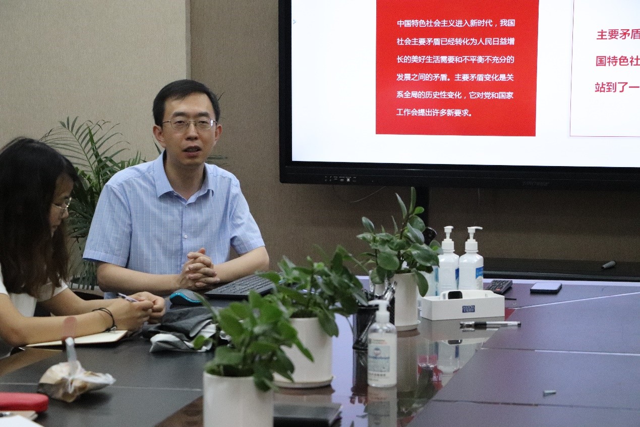 最后,李院长以“进入社会主义新时代”后“主要矛盾”和“高质量发展”的巨大变化给同志们呈现了共产党在新时代“为人民服务”的宗旨理念是如何深入贯彻的实践画面。“历史充分证明,中国共产党和中国人民不仅善于打破一个旧世界,而且善于建设一个新世界。曾经鸦片战争使得中国从“落日辉煌”逐渐沦为半殖民地半封建社会,直至新中国成立后,中国共产党团结带领全国人民集中精力全面恢复和发展国民经济,建设社会主义制度。再到如今社会主义新时代制度完善的局面,无一不彰显社会主义制度的优越性和中国共产党的伟大。