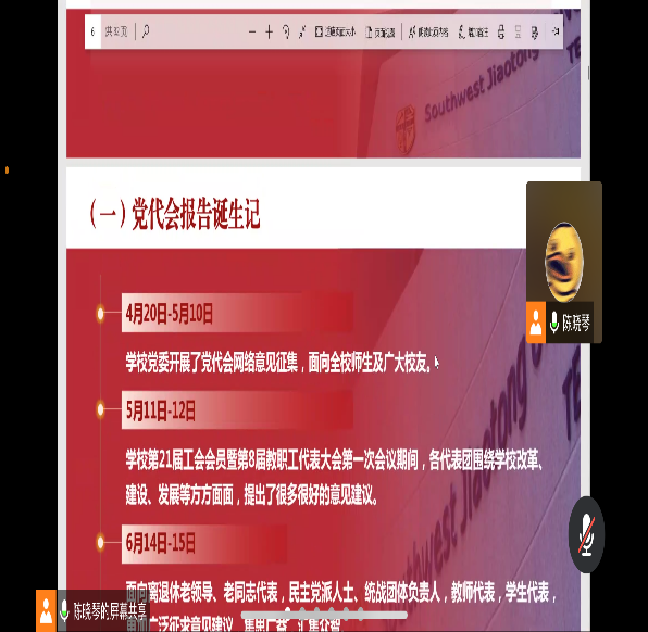 办学质量的提高。此外,大会对未来乃至到建校150周年之际办学治校的总体思路、发展目标、基本准则进行报告。其一,将进一步明确学校的总体办学思路,建设“助力‘一带一路’倡议、服务构建人类命运共同体”、“轨道交通领域世界第一”、“兼容并包、百花齐放、各学科竞相迸发”、“师生员工人人皆有幸福感”的优视频