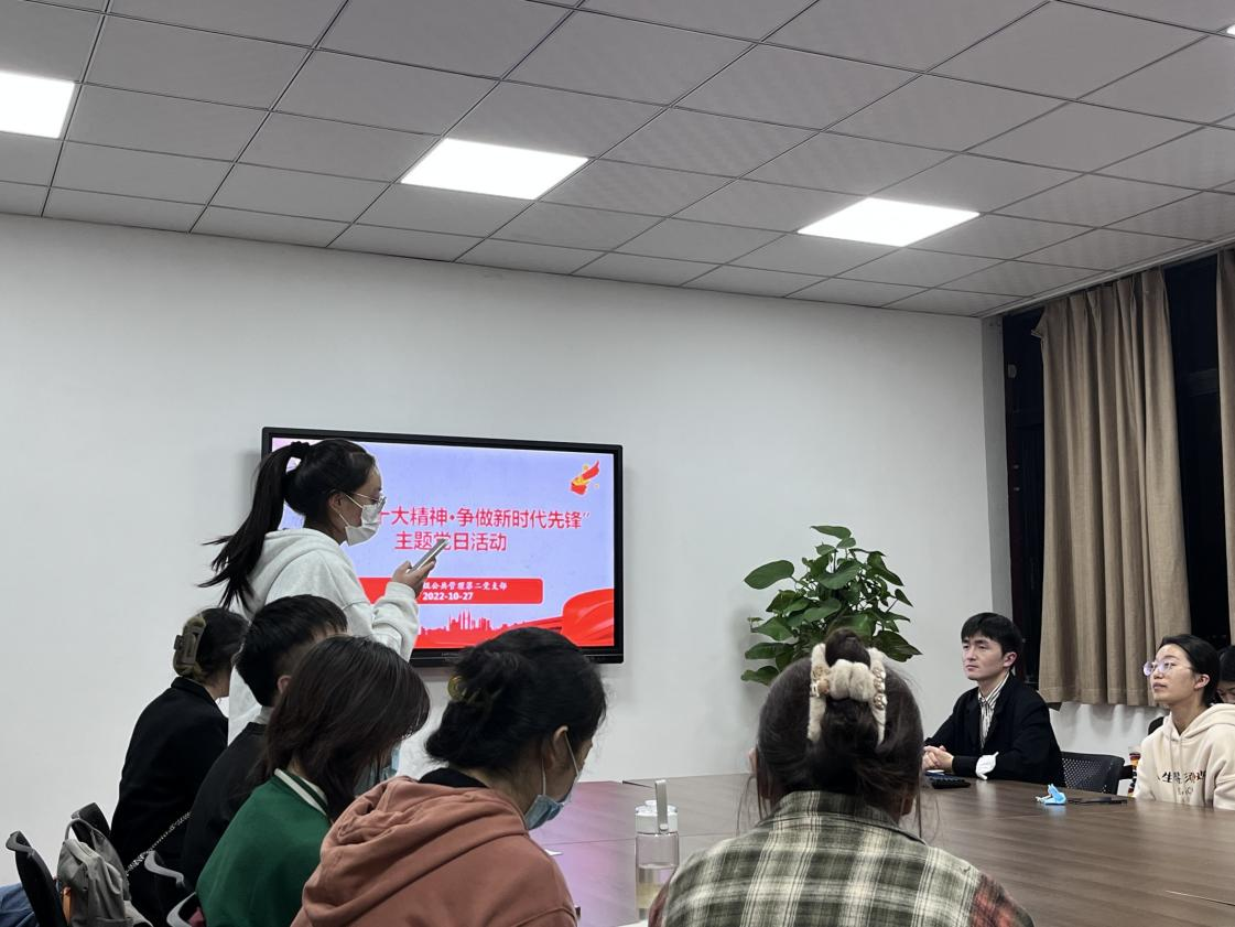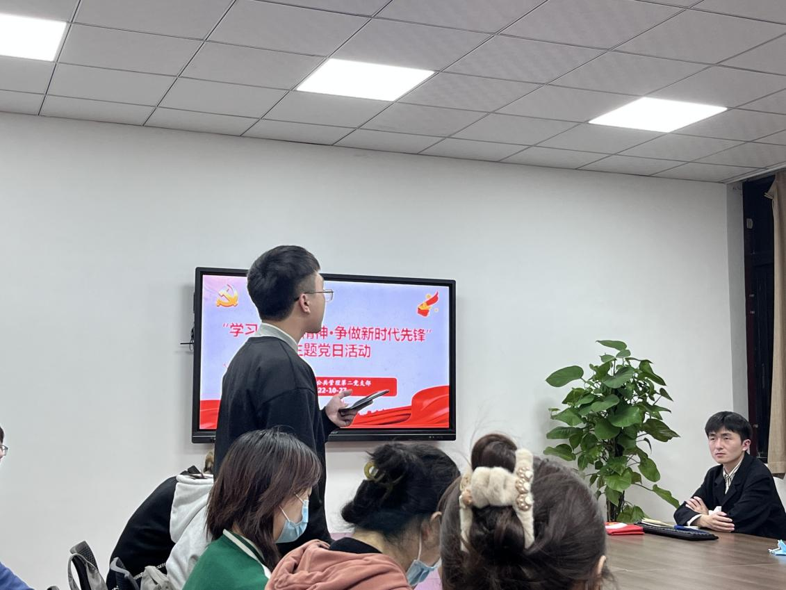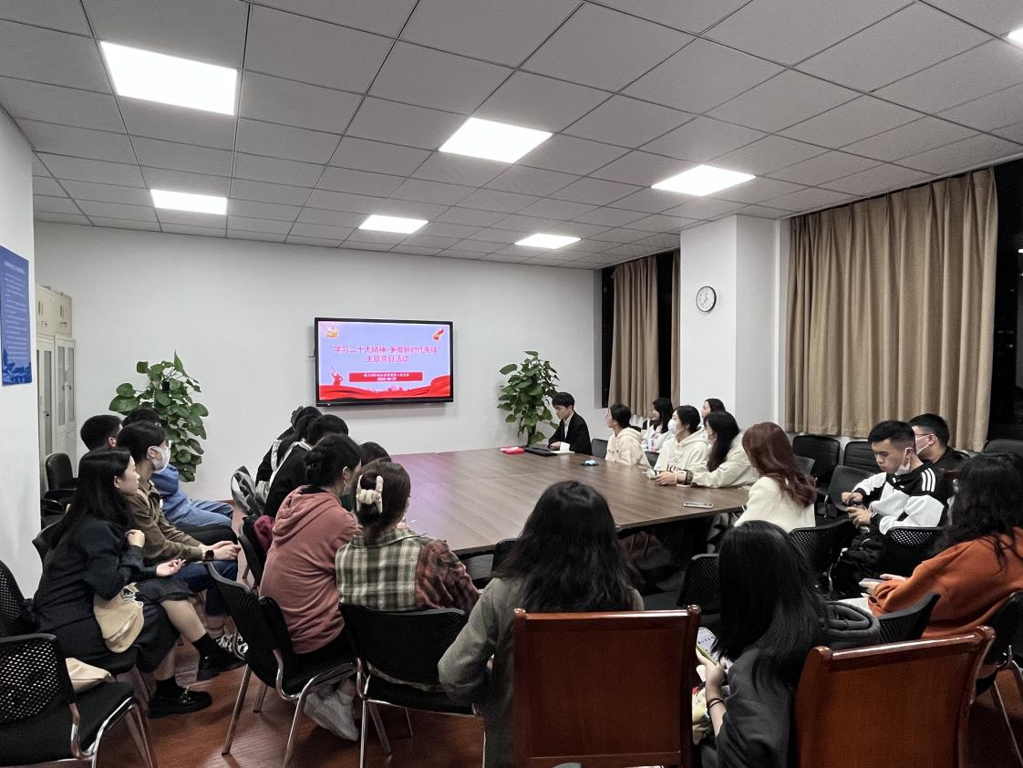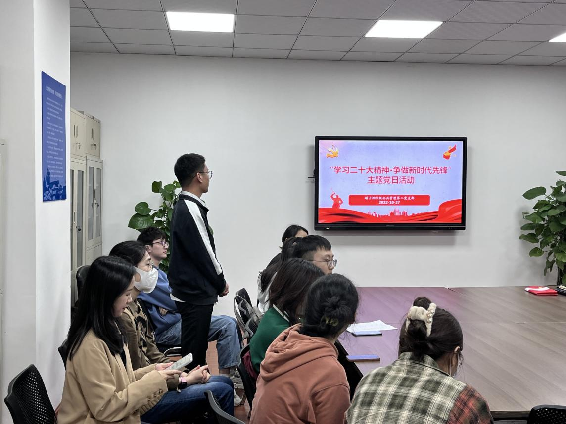 为深入学习宣传贯彻党的二十大精神,10月27日晚,硕士2021级公管第二党支部在九里校区零号教学楼01107教室召开了以“学习二十大精神·争做新时代先锋”为主题的党日活动,会议实到党员19人,广大团员也积极参与了本次活动。
