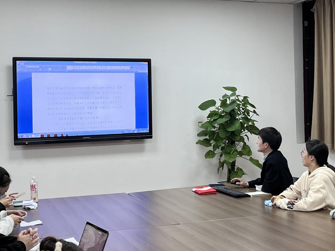 党支部书记疏金金同志带领大家学习了二十大报告原文,围绕深刻领会二十大的重大里程碑意义及习近平总书记所作报告的丰富内涵,疏金金从大会主题、过去的历史性变革、新时代共产党的历史使命、习近平新时代中国特色社会主义思想的历史地位和指导意义等方面进行了全面解读。