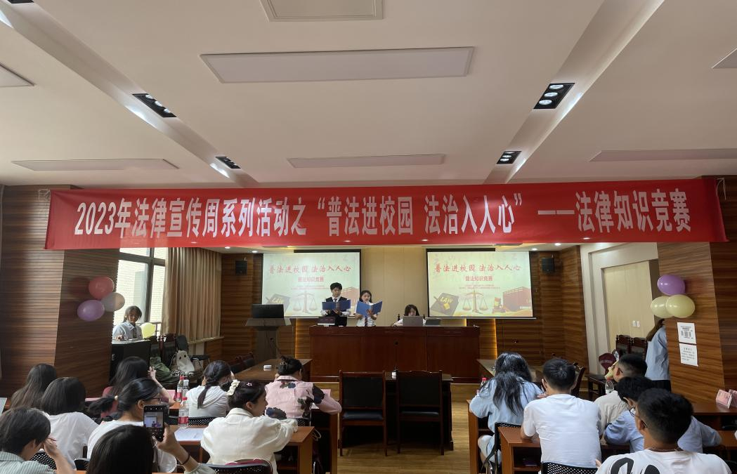 “普法进校园 法治入人心”法律知识竞赛活动。本次法律知识竞赛活动,是在日常校园普法活动的基础之上开展的,它既响应了教育部有关“建设法治校园”的号召,在全校师生范围内更为深入地宣传了基本法律知识,又充分展现了各位同学良好的团队协作力和较强的知识储备量。通过观摩这次法律知识竞赛,提高了积极分子们知法、懂法、用法的能力,相信每个同学都能成为法治社会的知晓者、参与者、建设者、弘扬者,我们“于法治轨道上全面建设社会主义现代化国家”的远大目标定能早日实现!