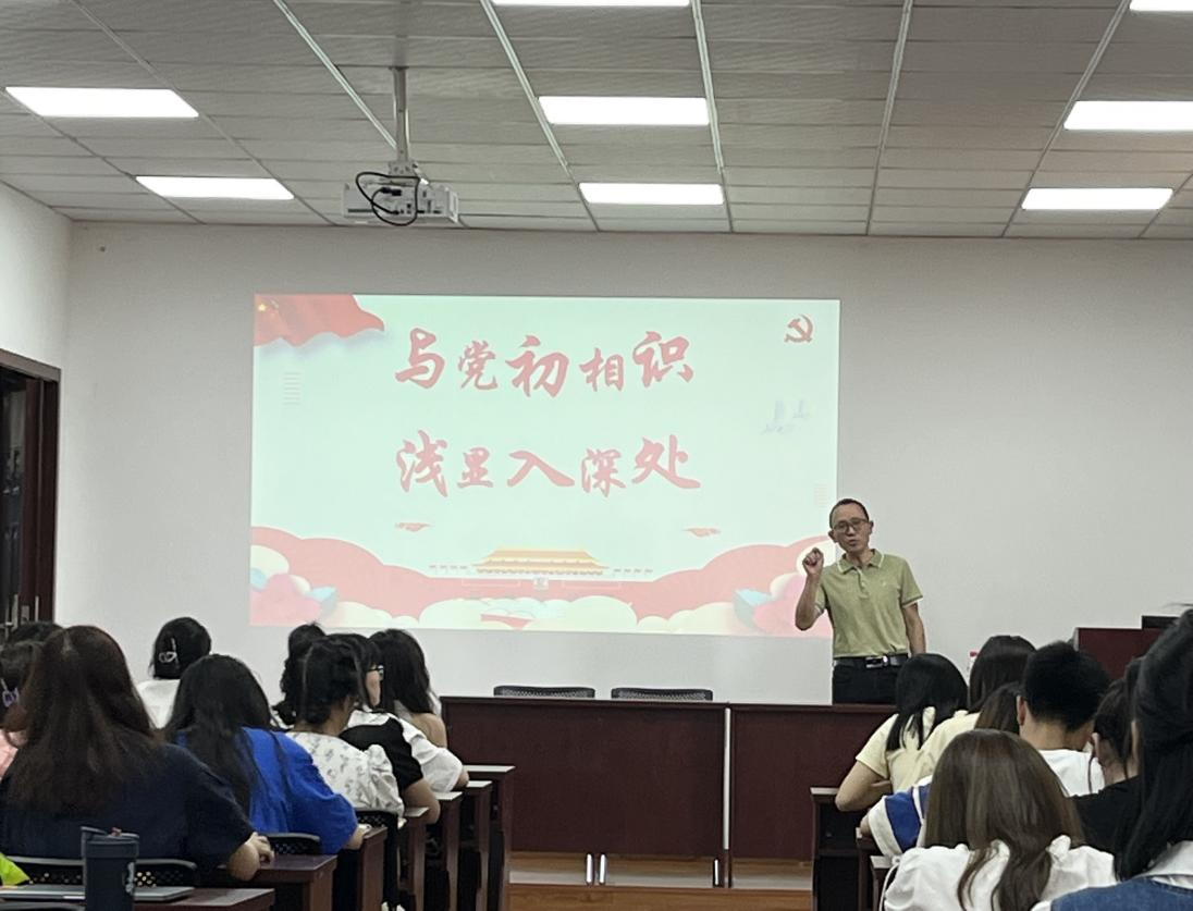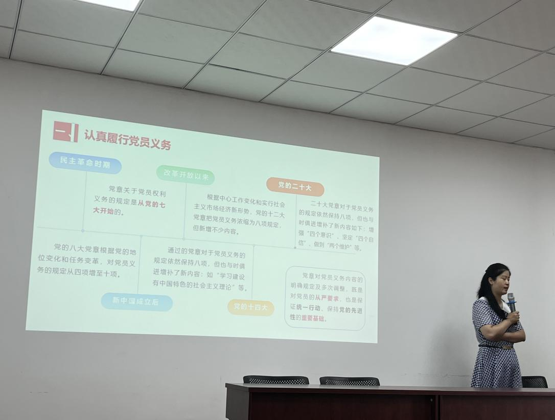 党委委员彭川宇老师为入党积极分子作《中国共产党的组织、纪律和作风》专题讲座。彭老师围绕党的二十大党章修改原则和要点、党章的重点内容解析以及深入学习贯彻党的几点思考三大方面展开全面系统的阐述,引导积极分子深入了解党的性质、宗旨、纲领、组织原则、纪律和作风,端正入党积极分子的入党动机,牢固树立起为共产主义事业奋斗终身的信念。