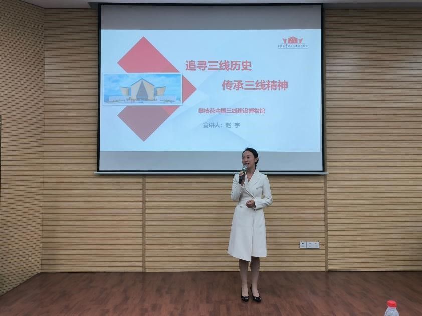 接着,由攀枝花中国三线建设博物馆专职讲解员杨永虹老师为大家带来红色故事专题宣讲——英雄的成昆铁路。杨老师为大家讲述了成昆铁路的艰难修建过程及伟大的成昆精神。成昆铁路沿线位于地质大断裂带,在这样的地质条件下修建铁路几乎是不可能的事,但成昆铁路仍然得以坚固地蜿蜒于中国西南大地上,为人民的出行与国家的发展保驾护航,其中的艰辛与曲折可想而知。