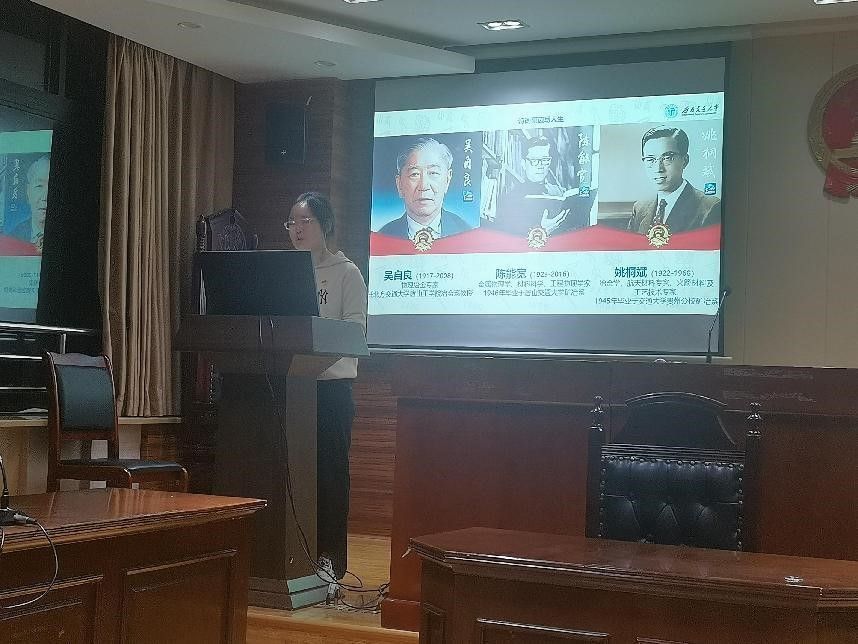杰出校友陈能宽先生的英雄事迹,她分别从陈能宽先生的青年求学,中年奋斗、晚年教育三个阶段展开讲解。在30岁到60岁,一位科研工作者学术成熟的黄金时期里,陈能宽先生放弃国外优渥的待遇,毅然回到祖国,来到荒瘠的大漠,将自己的全部热情和精力献给了新中国的核武器研究。他许身为国,一生澎湃!陈能宽先生这种埋头苦干、无私奉献的精神,既是社会主义核心价值观的重要内容,也是我们的力量源泉,更是一种高尚的情操,值得我们全体学生党员认真学习!