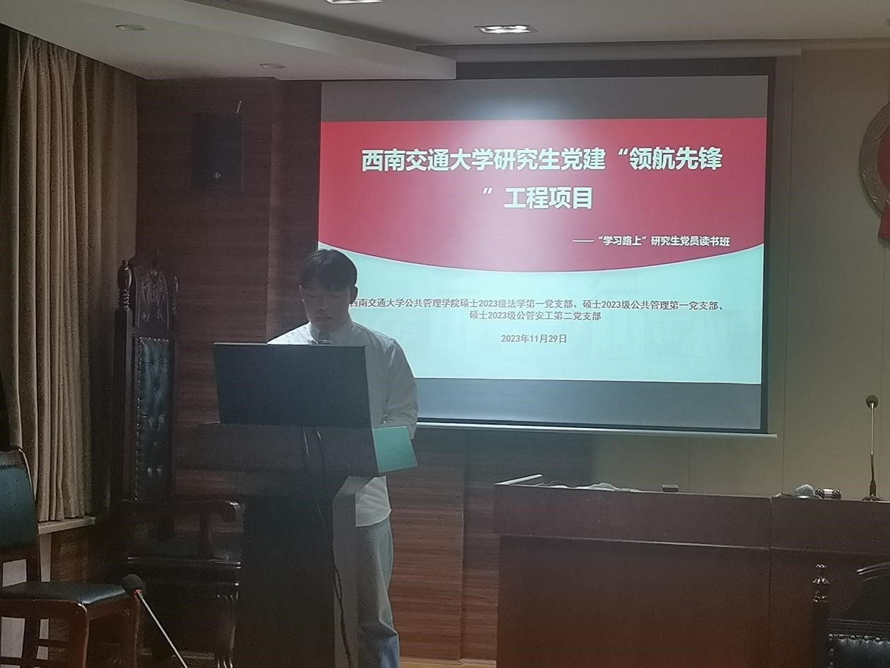 硕士2023级法学第一党支部、硕士2023级公共管理第一党支部和硕士2023级公管安工第二党支部全体党员、入党申请人和入党积极分子共计70余人,在九里校区0号教学楼1417教室,联合举办研究生党员读书班专题活动,本次活动邀请优视频