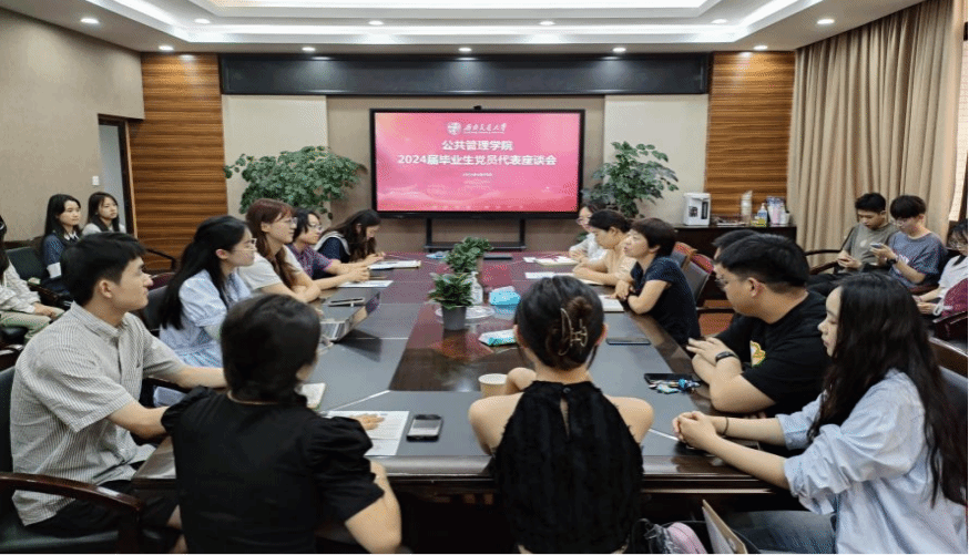 高书记在总结讲话中,向即将启程出发的全体毕业生送上祝福,对同学们的真挚发言表达感谢,并表示今天座谈会上的意见和建议,学院会认真总结,尽快研究解决方案,更好地为公管学子营造更加安全、舒适、便捷的学习成长环境。关于党员代表们提到的档案材料等问题,学院会进一步梳理完善相关制度,在未来加强对党员的教育培训。