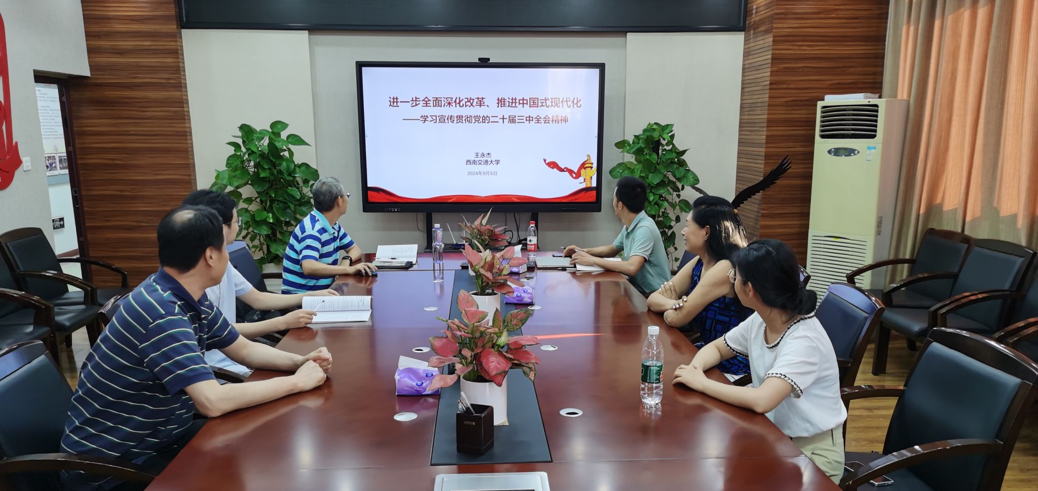 为了学习贯彻党的二十届三中全会精神,2024年9月5日下午16:30,学院教工应急管理研究中心党支部于J01212会议室开展主题党日理论学习活动。本次学习活动由学院院长、中心党支部书记王永杰作《进一步全面深化改革、推进中国式现代化—学习贯彻党的二十届三中全会精神》的专题分享,中心全体成员参与本次专题理论学习。