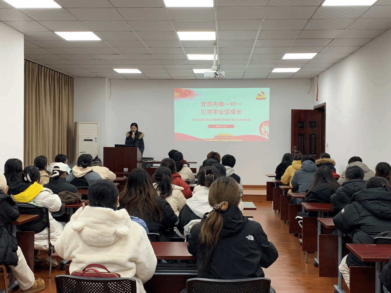 2024年12月13日,“党员先锋一对一,引领学业促成长”活动暨启动仪式在九里校区零号教学楼开展,低年级报名参与本次活动的同学以及各党支部党员同志、党支部指导老师共计200余人参与其中。本次活动旨在为优秀党员同志与学习后进同学搭建交流互动的桥梁,打破“无法问”“无处问”“不敢问”的心理壁垒,引导有需求的同学积极主动沟通,促进党员同志先锋模范作用的发挥。