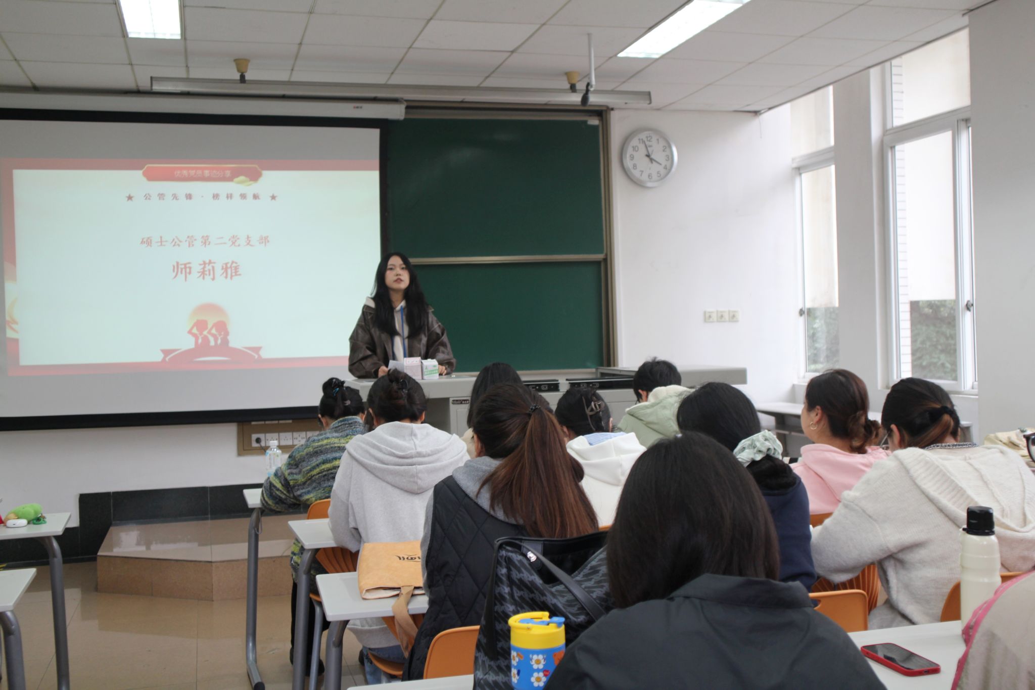 硕士公管及硕士公管安工第二党支部以“公管先锋・榜样领航”为主题举办优秀党员事迹分享会。本次分享会是“弘扬伟大抗战精神 汇聚青春奋进力量”校级示范性学生党支部特色支持活动之一,活动邀请了优视频