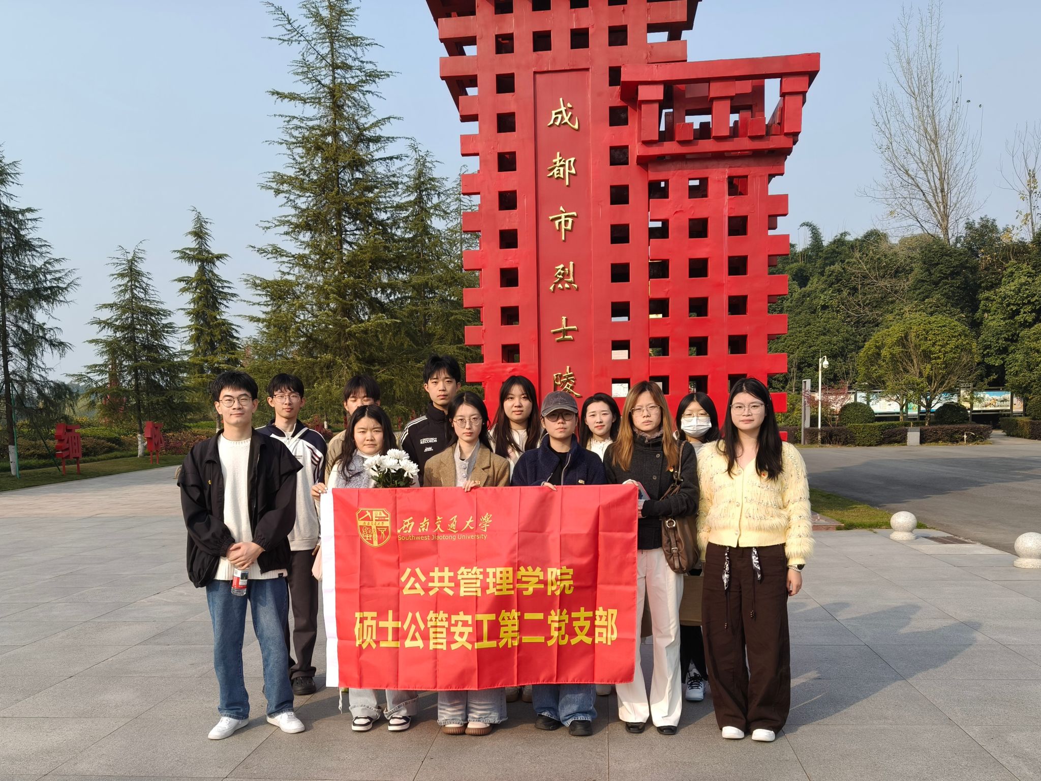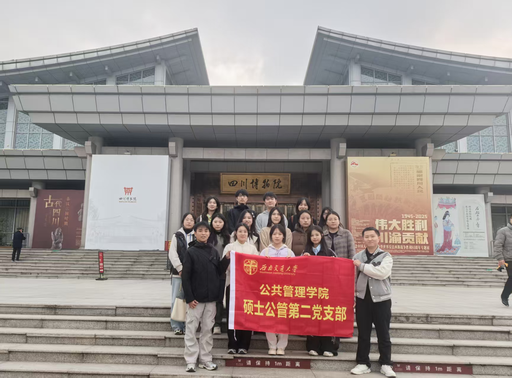 硕士公管第二党支部与硕士公管安工第二党支部联合组织开展了“追寻红色记忆·传承抗战精神”主题实践活动。两个支部的党员和积极分子分别前往四川博物院和成都烈士陵园进行参观学习,在历史回望中汲取精神力量,坚定理想信念。