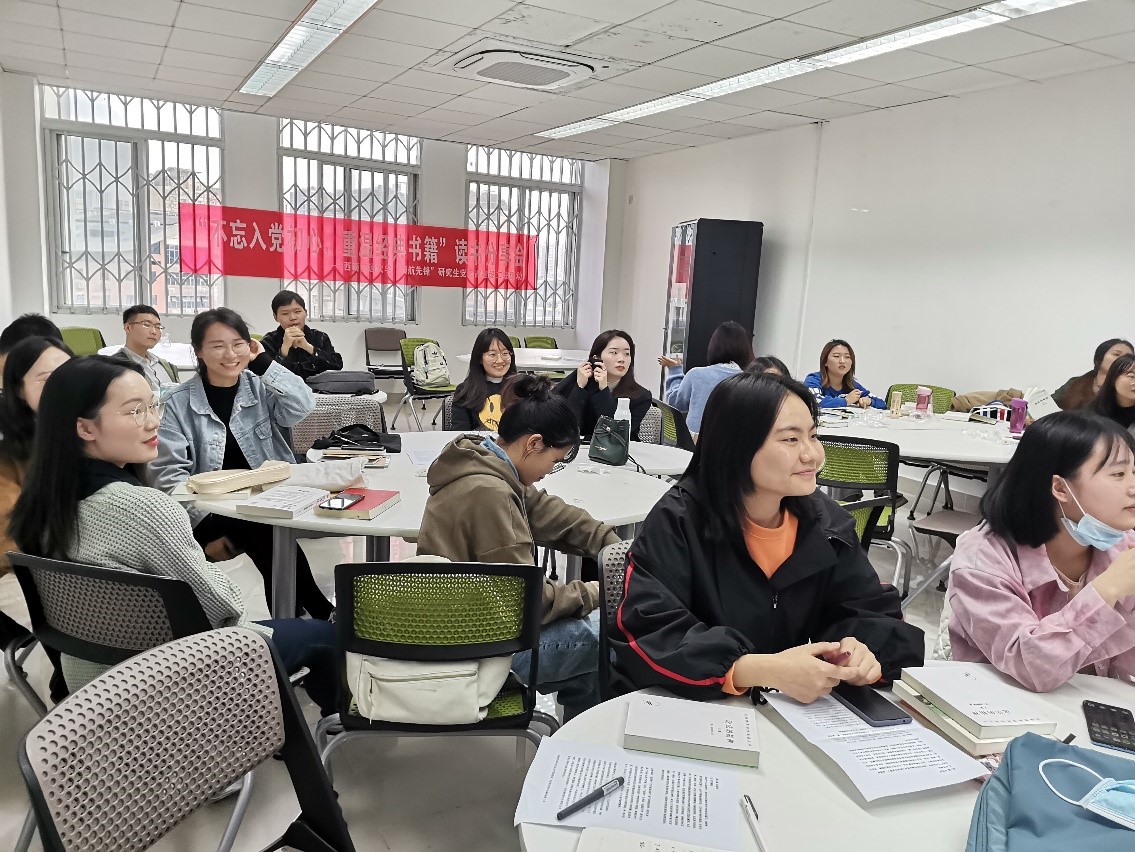 研究生党建“领航先锋”工程子项目——以“不忘入党初心,重温经典书籍”为主题的读书分享会活动,党支部全体成员以及部分入党积极分子参与此次活动。