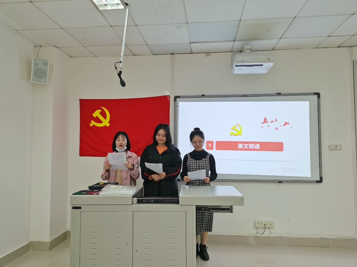 活动开始,首先由党支部书记肖秋月同志讲述活动目的及活动要求,并指出此次活动的意义所在。然后分小组就所阅读书目的精彩片段进行朗诵,并由其他小组进行打分,结合前期各小组成员所提交的阅读计划分数进行综合评比。在各组朗读结束后,为进一步活跃现场气氛、增进同学们之间的感情,主持人安排了有关中国共产党以及当代社会所弘扬的正能量热词作为游戏内容,使大家在游戏中进一步增强对于党和社会的了解与体悟。