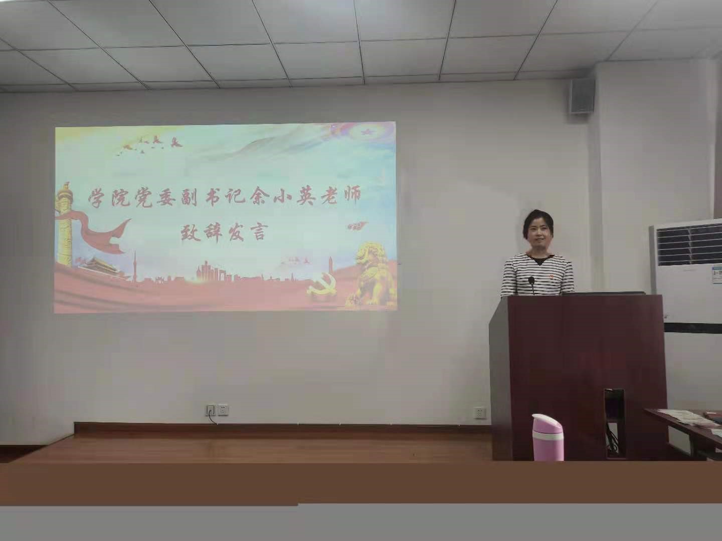 第一部分:由学院党委副书记余小英老师致辞发言。她谈到,历史是最好的教科书,加强党史学习有助于青年学子更好地理解中国共产党团结带领人民艰苦奋斗、砥砺前行的光辉历程。学生党员秉持“加强党史学习,追溯入党初心”的信念,深入学习党史,用赤诚之心诉说党的故事。