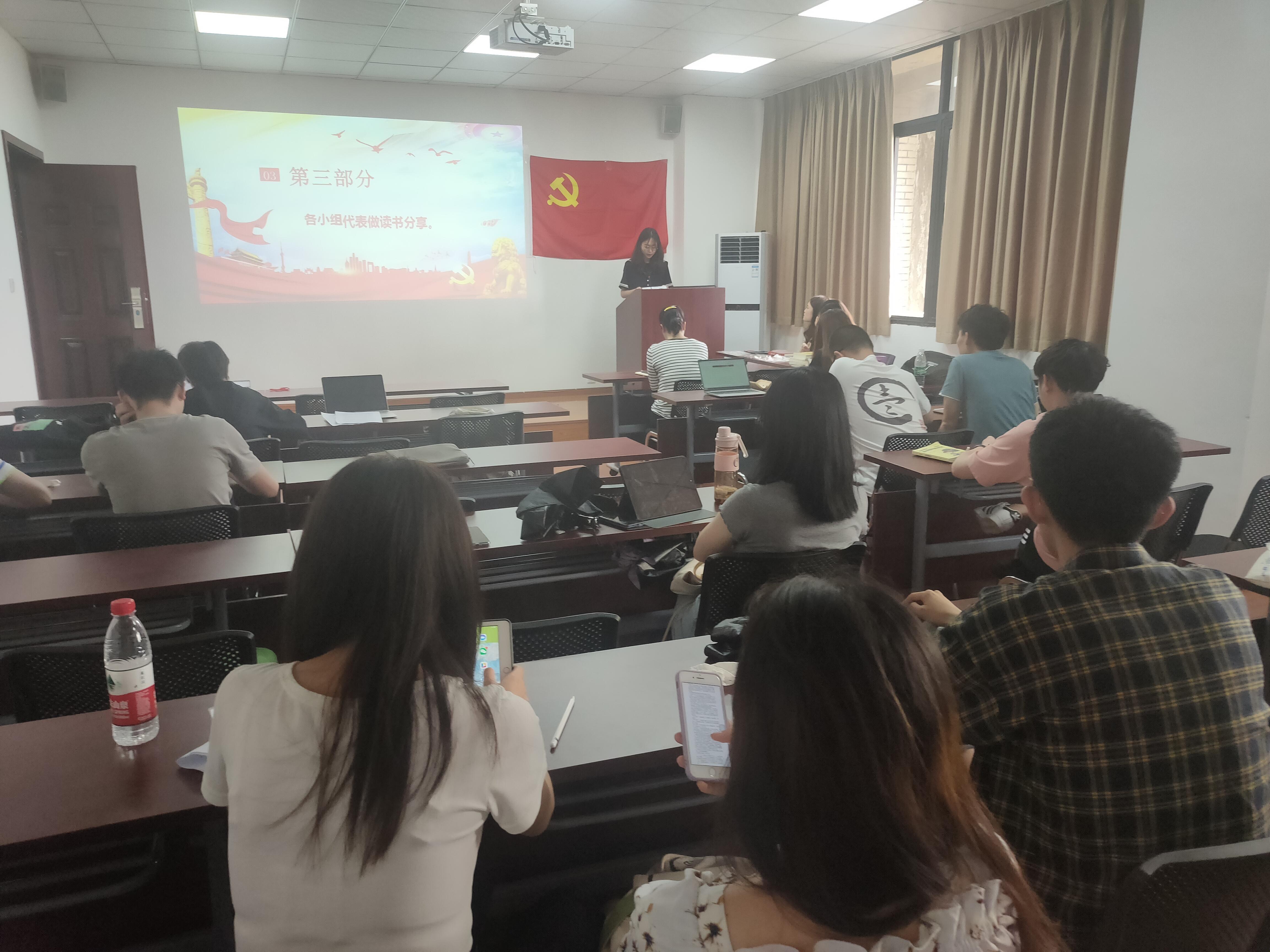 2021年是中国共产党建党一百周年的历史性时刻。为加强党史学习教育,弘扬红色精神,激励广大青年学生在学习中坚守理想信念,争做新时代的新青年,引导广大青年学生胸怀“两个大局”,为实现“两个一百年”奋斗目标贡献自己的力量。硕士2020级法学第一党支部于2021年6月17日下午15:00在0号楼1103会议室开展“学党史、话初心、跟党走”庆祝建党100周年专题读书分享活动。此次活动邀请到学院党委副书记余小英老师作为特别嘉宾,活动由党支部书记肖秋月同志主持,支部全体成员均参与此次活动。