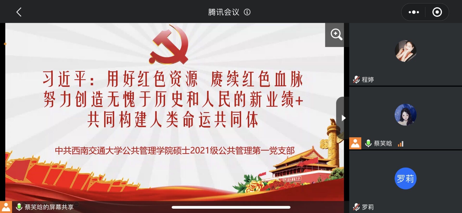 硕士2021级公共管理第一党支部学习习近平关于红色资源、人类命运共同体重要讲话及十九届六中全会