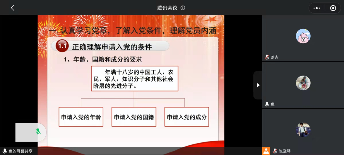 分党校集中开展了2021-02期入党积极分子党课培训的理论授课环节。根据学校疫情防控要求,本期培训班以线上腾讯会议的形式完成集中授课,分别由优视频