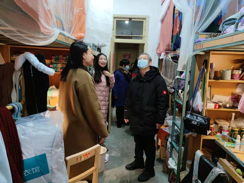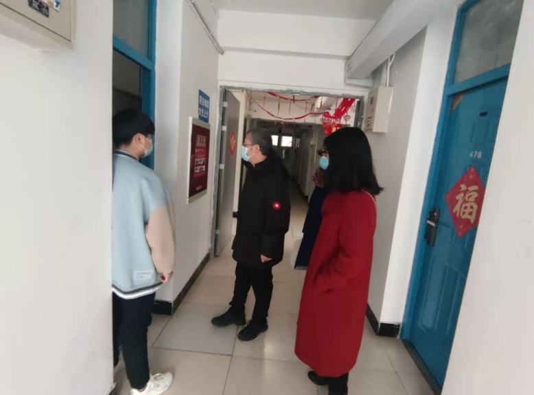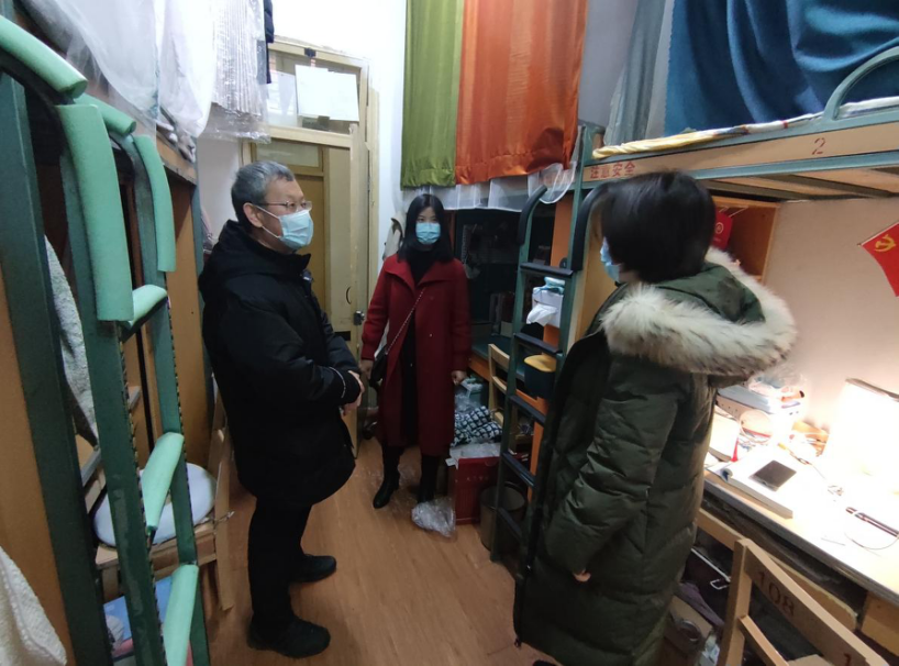 最后,学院院长王永杰、党委副书记余小英、团委书记薛婧一行走访了留校学生宿舍,关心留校学生的住宿、就餐和用水用电情况,特别关心留校过年学生的相关情况,表示留校学生如果有困难一定要积极向学校和学院反馈,学校相关部门和学院会尽力为大家排忧解难。