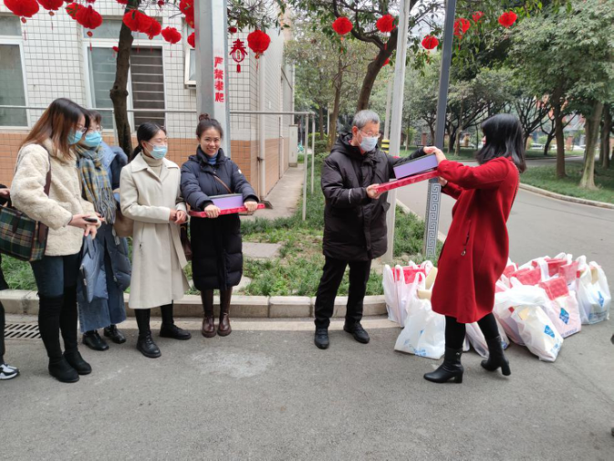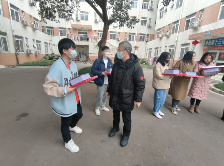 学院院长王永杰、党委副书记余小英为全体留校学生一一发放了慰问礼包,代表学院党委和学院教职工祝福留校同学们新年快乐,叮嘱同学们留校期间和返乡途中务必注意人身财产安全,对因疫情不能回家过年的同学们也表示关心关怀,希望留校过年的同学们能在校过个好年。