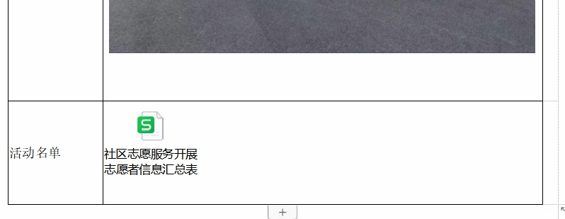 ③在申请表后插入志愿者信息汇总表(附件5),格式方法如下:
