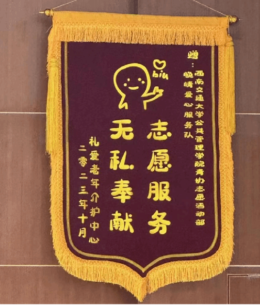 一路走来,公管青协在校团委、青志联的指导下收获颇多、受益匪浅。协会入选“七彩假期”全国1000支志愿服务示范团队、获得四川省首届高校志愿服务项目大赛实践项目赛道银奖、第六届中国青年志愿服务项目大赛四川省赛银奖、云支教“优秀宣传高校”、第九届交通公益志愿服务三等奖、第十届交通公益志愿服务季校级金奖等诸多荣誉,收到了数封社会实践表扬信和金牛区礼爱老年介护中心赠与的锦旗。公管青协已连续多年获得优视频
