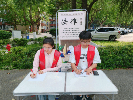 为提升法治实践教育在高校中的运行,公管青协法律援助队打造的大学生法律咨询工作室已在学校已运行7年。该项目发挥学院法学学科特色,在校内打造 “法律解忧店”,通过的“1+2+2+4”的咨询模式,举办法律宣传周、民法典教育、法律情景剧大赛等校级精品活动,开展宪法晨读、法律知识推送、法治新媒体作品评选等网络思政活动。依托“大学生法律之家”签约社区,结合国家安全、公共卫生、网络安全等热点,为校外居民提供法律咨询和普法教育服务。2023年,“法律解忧店”在校内开展户外咨询活动30余场,开展法律进社区活动2场,服务学生及九里校区周边居民400余人,累计志愿时长700余小时。