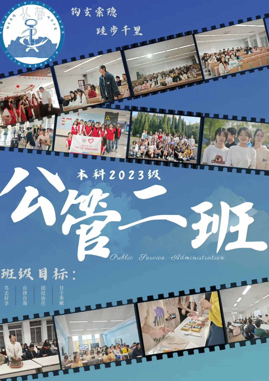 班级介绍:公共2023-02班是一个充满活力和凝聚力的集体。我班牢记“钩玄锁隐,跬步千里”的班训,致力于成为具有公共意识、具备专业素养的人才。在学习上,我们精益求精,将实践与理论相结合;在社会实践里,我们实事求是,用辩证的眼光看待社会问题;在志愿活动中,我们团结协作,以赤诚之心奉献青春力量。同时,本班积极开展班级活动,不定期举行读书分享会、校级专项实践活动、团日活动等,推动班级建设。公共事业管理2班是一个团结向上、生机勃勃的优秀集体。在未来的日子里,我们将携手共进,努力奋进,深耕于公共事业,为社会发展进步奋斗。