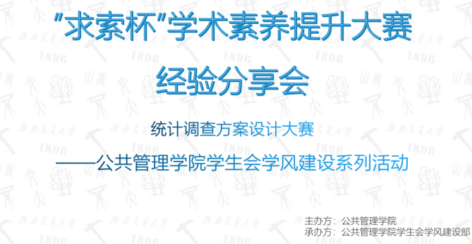 学生会于3月28日至4月2日期间以腾讯在线会议的形式开展了“求索杯”学术素养提升大赛经验分享会,活动邀请了往届赛事一等奖获得者分享赛事体验与心得。