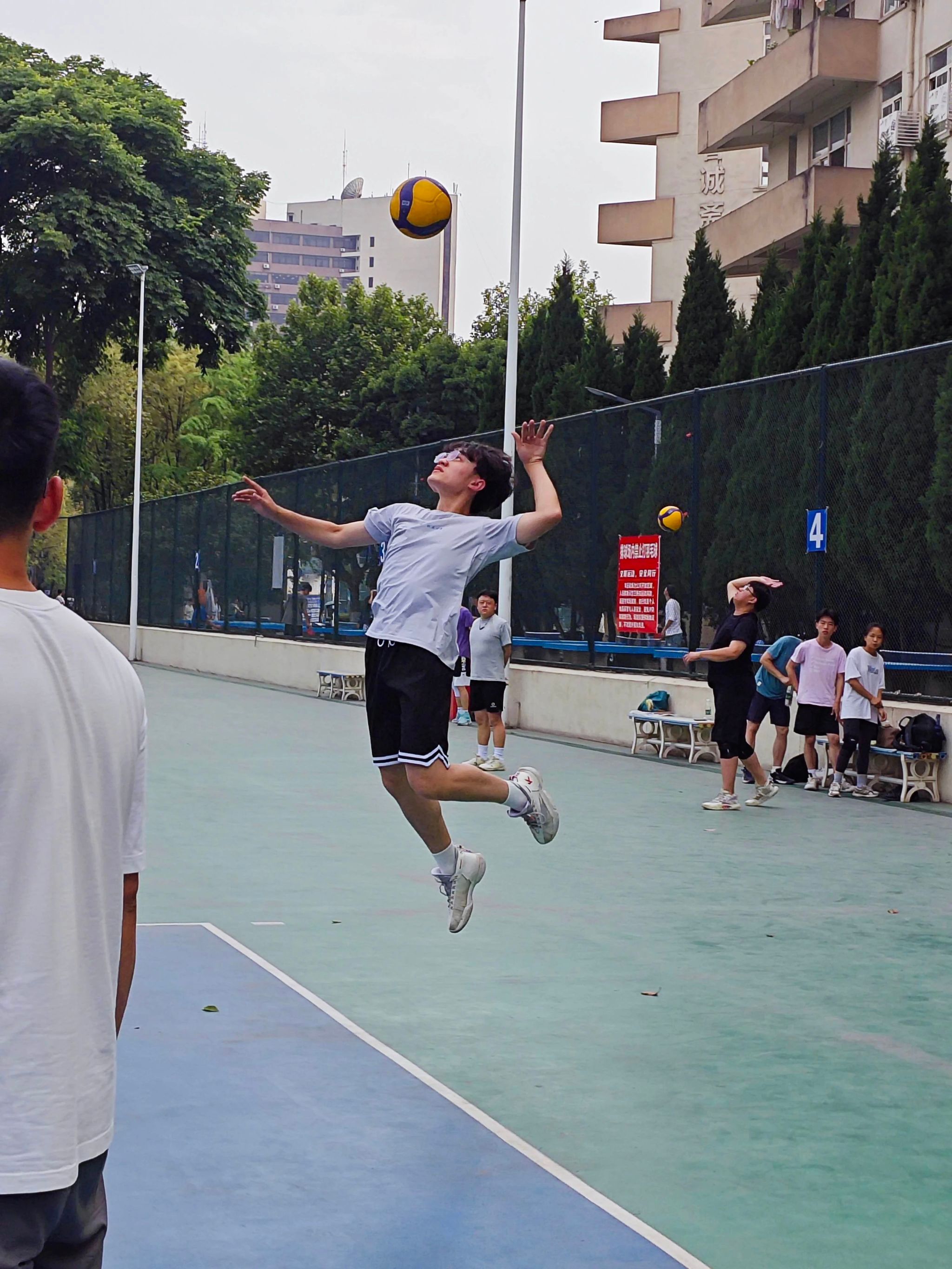 主办,学院学生会组织承办的毕业季系列活动之师生排球赛,于5月21日下午5:00在九里校区排球场火热开赛。“疯狂公管队”与“有东哥在一定会赢队”两支队伍展开激烈角逐,为现场观众带来了一场体育盛宴。