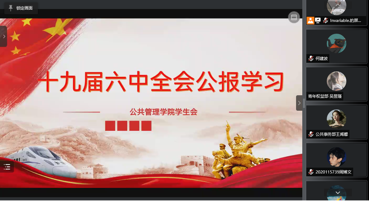在线上会议的共同讨论中,各位成员各抒己见,最终通过思想的交流碰撞,在三个“需要”、两个“确立”、五大“历史意义”、十个“坚持”、一个“根本问题”、四个“必须”、一次“十分重要的代表大会”、一个“号召”这八个数字的指引下,进一步了解党带领人民筚路蓝缕、奠基立业的一百年奋斗历程,坚定了“听党话,跟党走”的信心和决心。