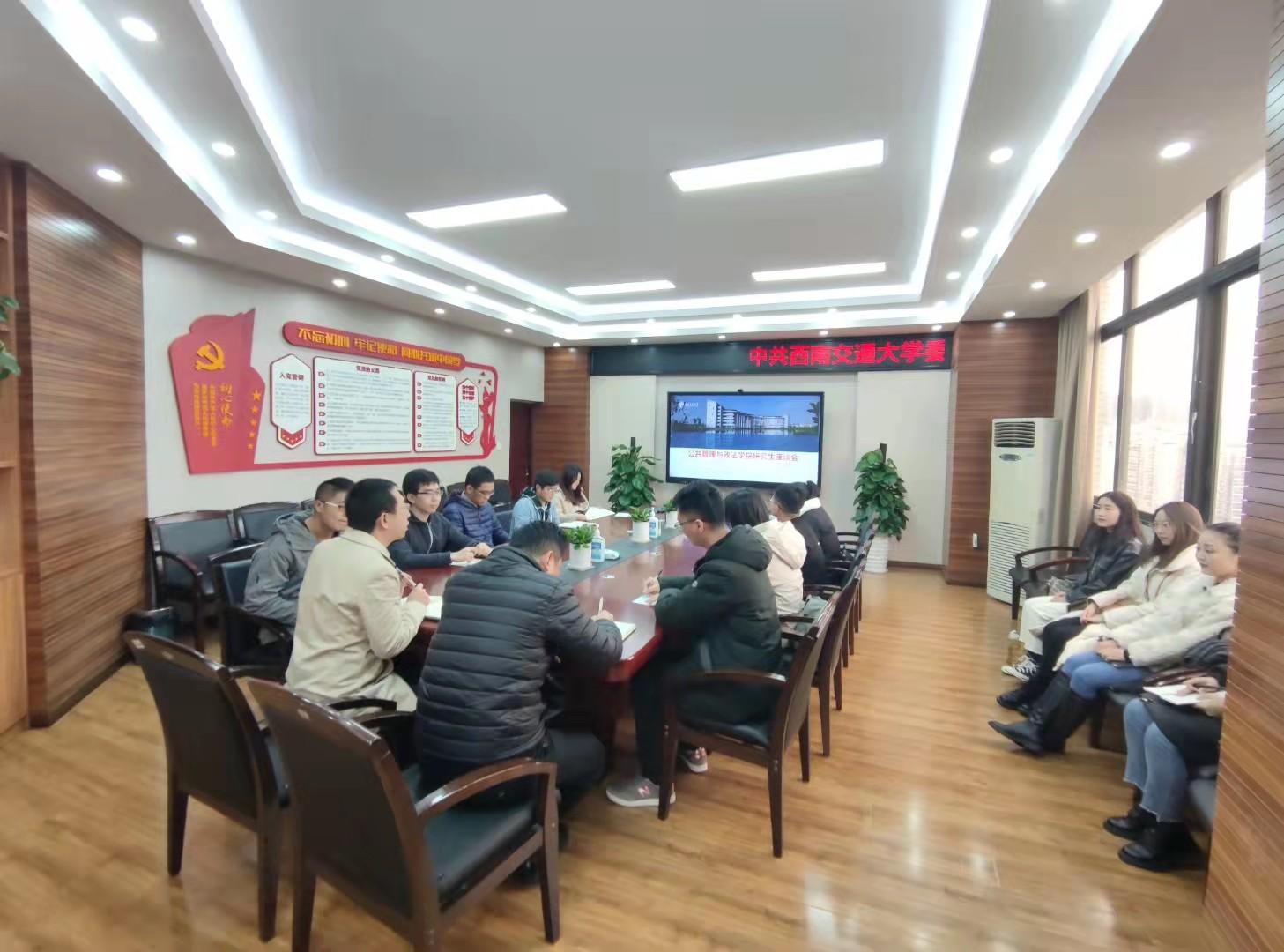副院长、研究生辅导员、公管研会主席团及就业权益部负责人组织各班相关班委,就研究生培养工作、科研学习情况及相关就业权益问题召开座谈会。