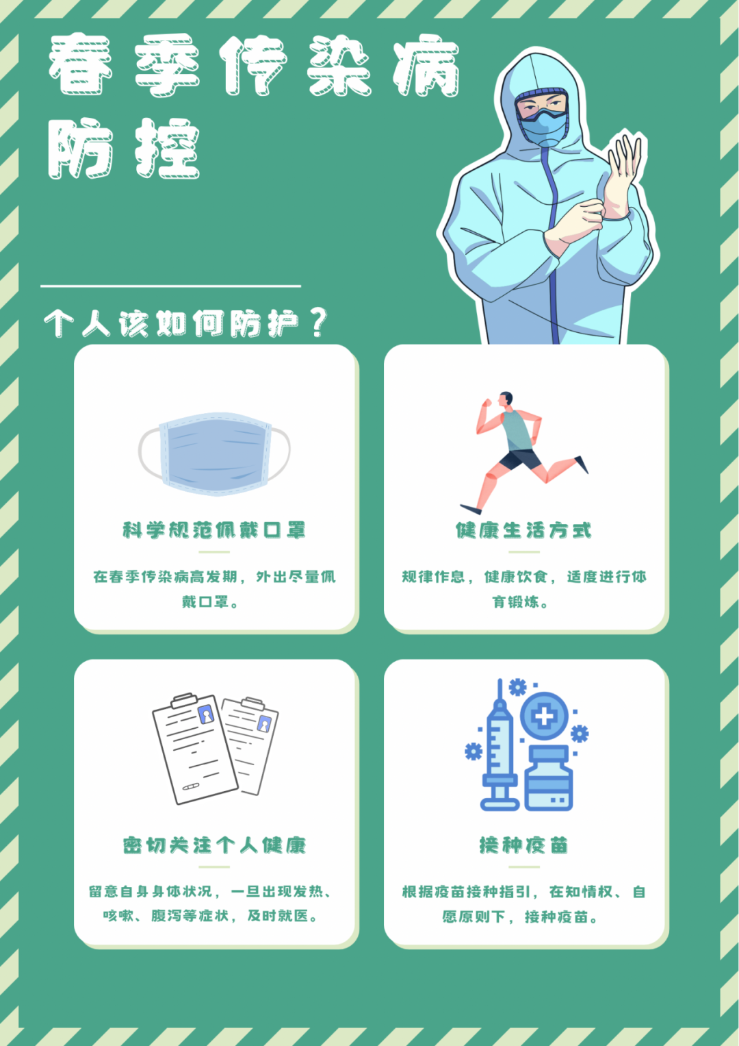 4、接种疫苗:根据疫苗接种指引,在知情、自愿的原则上,诸位学子可以自行决定接种针对传染病的疫苗,筑牢免疫屏障。