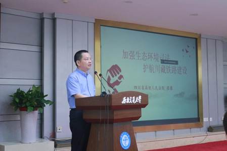 With the theme of “The Governance of Transportation Industry and Legal issues of Sichuan-Tibet Railway Construction”, the forum was divided into two sections. The first session was the keynote speech, which was presided over by Gao fan, Secretary of the Party Committee of the School of Public Affairs and Law of Southwest Jiaotong University. Yang Jun, Deputy Director of the Legislative Affairs Commission of Standing Committee of Sichuan Provincial People’s Congress, Zhang Neng, Vice President of the Sichuan Provincial High People’s Court, Wei Bo, Deputy Director of the Digital and Financial Development Department of Chengdu Railway Bureau and Chen Jiahong, Professor of the School of Public Affairs and Law of Southwest Jiaotong University delivered keynote speeches.