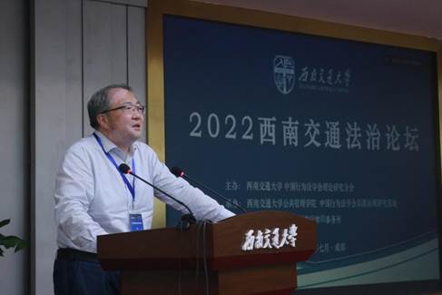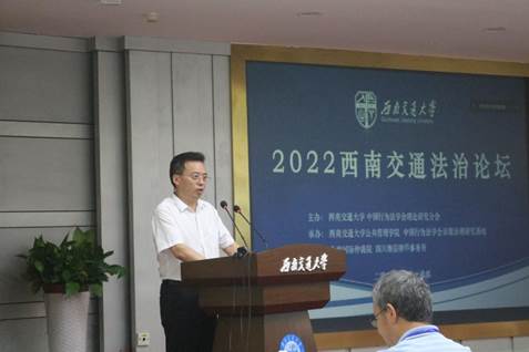 President Xi Jinping stressed that “law is the instrument of governing a country,and the rule of law is the basis of national governance system and governance capacity”. At 9:00 a.m, on July 17, 2022, the 2022 traffic law forum in southwest China was held in the Academic Exchange Center of Jiuli campus of Southwest Jiaotong University. This forum was hosted by Southwest Jiaotong University and the Theoretical Research Branch of China Behavior Law Association, organized by the School of Public Affairs & Law of Southwest Jiaotong University and the Litigation Source Governance Research Base of China Behavior Law Association, co-organized by Beihai Court of International Arbitration and Sichuan Weixin Lawyer Office. About 100 participants online and offline attended the forum, including Jiang Bixin, Deputy Director of the Constitution and Law Committee of the 13th National People’s Congress, Yang Jun, Deputy Director of the Legislative Affairs Commission of Standing Committee of Sichuan Provincial People’s Congress, Zhang Neng, Vice President of the Sichuan Provincial High People’s Court, Zuo Weimin, Dean of the College of Law of Sichuan University, Zhao Wanyi, Professor of the School of Civil and Commercial Law of Southwest University of Political Science and Law, Zeng Wenge, Professor of the School of Law of Chongqing University, and other professors, doctoral students from various universities and some lawyers from practical fields.