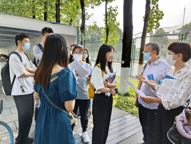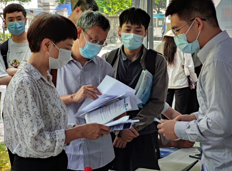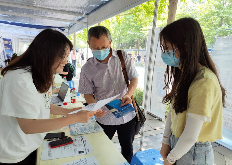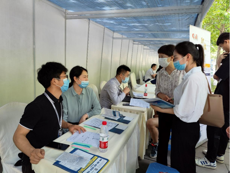 On May 10,2022, Gao Fan, Secretary of the Party Committee of the School of Public Affairs and Law, Wang Yongjie, Dean of the School of Public Affairs and Law, Yu Xiaoying, Deputy Secretary of the Party Committee of the School of Public Affairs and Law, Mo Tailin, Master Counselor of 2019 and Tang Ming, Undergraduate Counselor of 2018 came to the scene of “double election meeting” for graduate employment, and conducted the work on “ visiting enterprises and expanding posts to promote employment” so as to learn the employment situation and recommend graduates to the employers.