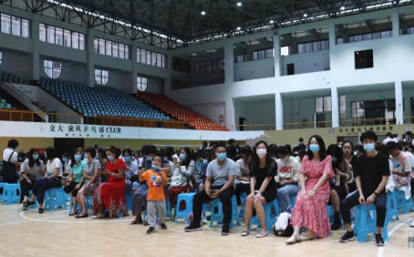 At 6:30 p.m., when the afterglow of the sun scattered on the campus of Southwest Jiaotong University, decorating the grass and flower with a layer of gold, students and teachers began to enter the Zhan Tianyou Gymnasium one after another. At the entrance, volunteers were responsible for handing out masks to students and teachers and disinfecting their hands in line with the epidemic prevention requirements. Gao Fan, Secretary of the Party Committee, Yu Xiaoying, Deputy Secretary of the Party Committee, Xue Jing, Secretary of the Communist Youth League of Committee, Liu Guihua, Director of the Department of the Public Administration, teachers including Xie Yuhang, Lin Jingjing, Yan Xueyong, and Wu Xiao, a teacher appointed by Xinjiang of the Students Affairs Department of the Party Committee arrived the scene as guests. Besides, Mo Tailin, the postgraduate counselor, Tang Ming, the undergraduate counselor of 2018, Shi Peijin, the undergraduate counselor of 2019, Xu Nan, the undergraduate counselor of 2020 and Chen Zedong, the undergraduate counselor of 2021 attended the activity.