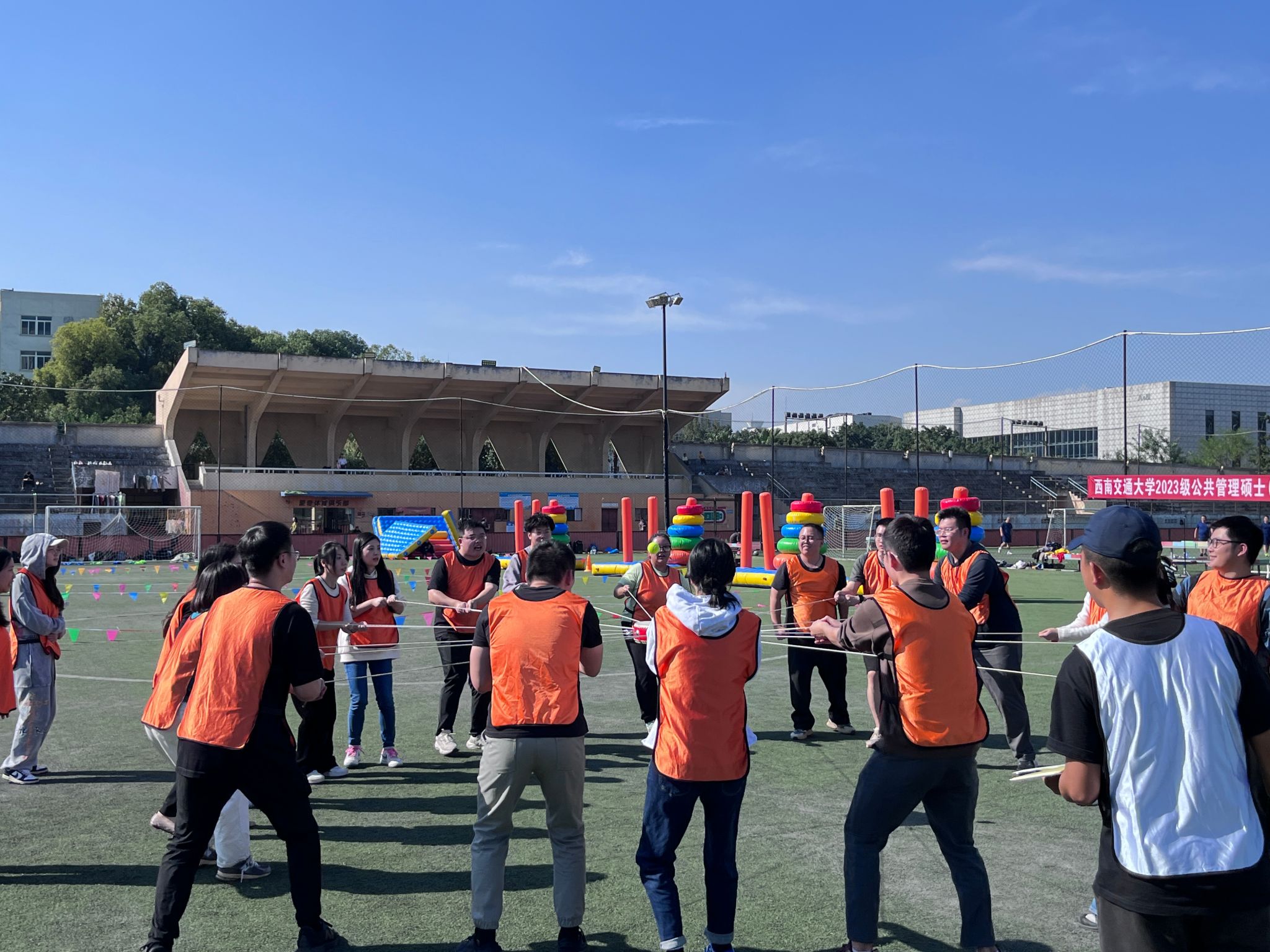 MPA中心于2023年11月5日下午在九里校区足球场顺利举办素质拓展训练活动。2023级226位MPA学子参与了本次素质拓展活动。