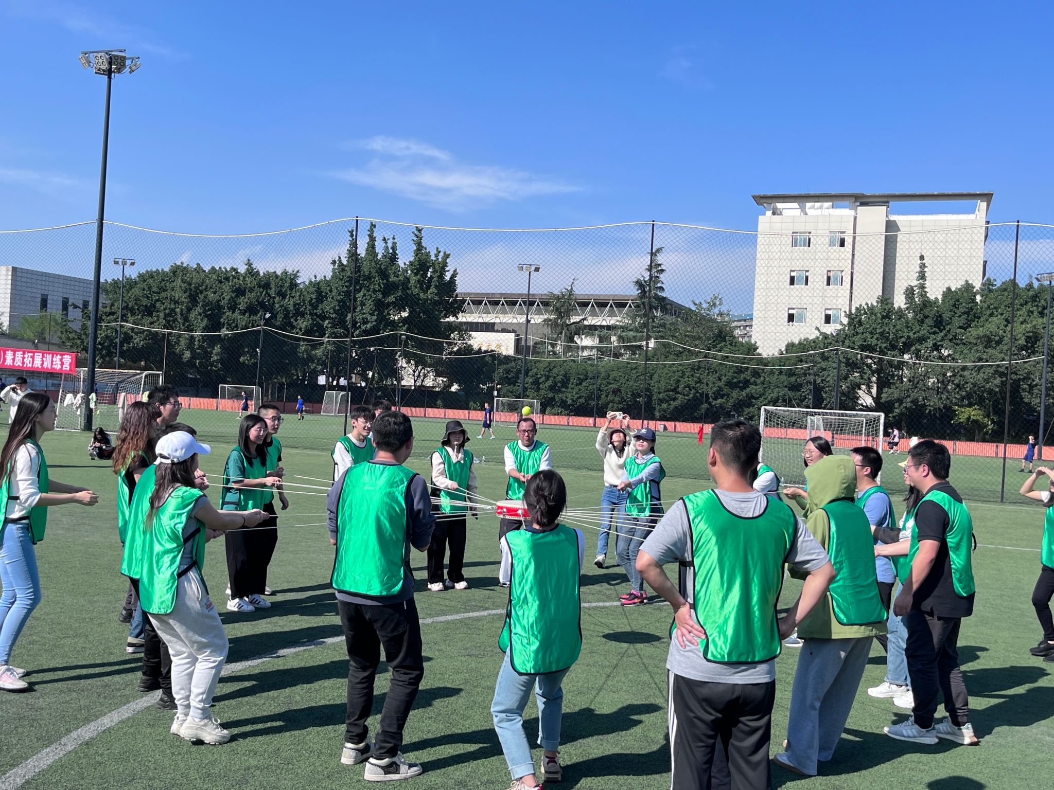 本次素质拓展活动共设置了四个有趣的活动项目。在“鼓动人心”中,多人利用鼓和绳子进行颠球比赛,团队协作、互相激励记录了彼此的奋斗痕迹。