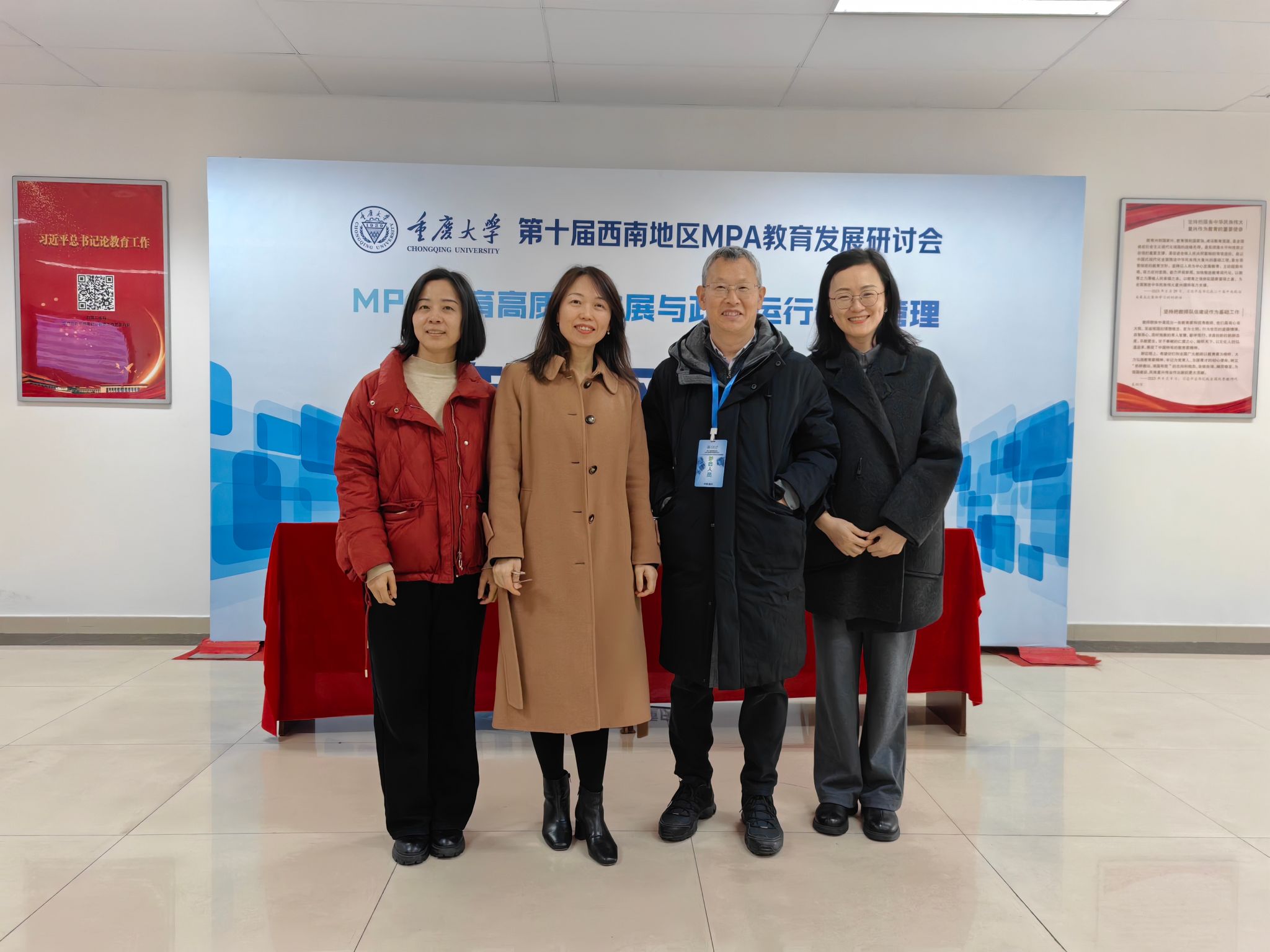 院长王永杰教授、副院长彭川宇教授、MPA教育中心张爽秋和陈冬菊四位老师代表优视频