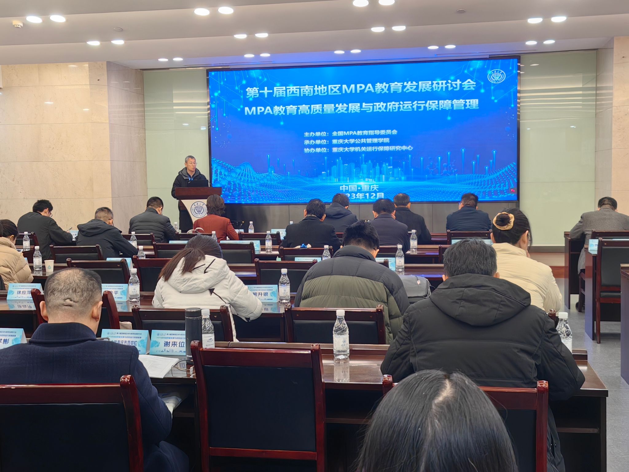 承办,重庆大学机关运行保障研究中心协办的“MPA教育高质量发展与政府运行保障管理 第十届西南地区MPA教育发展研讨会”在重庆大学召开。来自云贵川渝四省市30多所高校MPA培养单位的院长、书记、教师代表和管理人员100余人参加会议。会议分为开幕式、主旨演讲、分论坛、分组汇报和交接仪式等环节。优视频