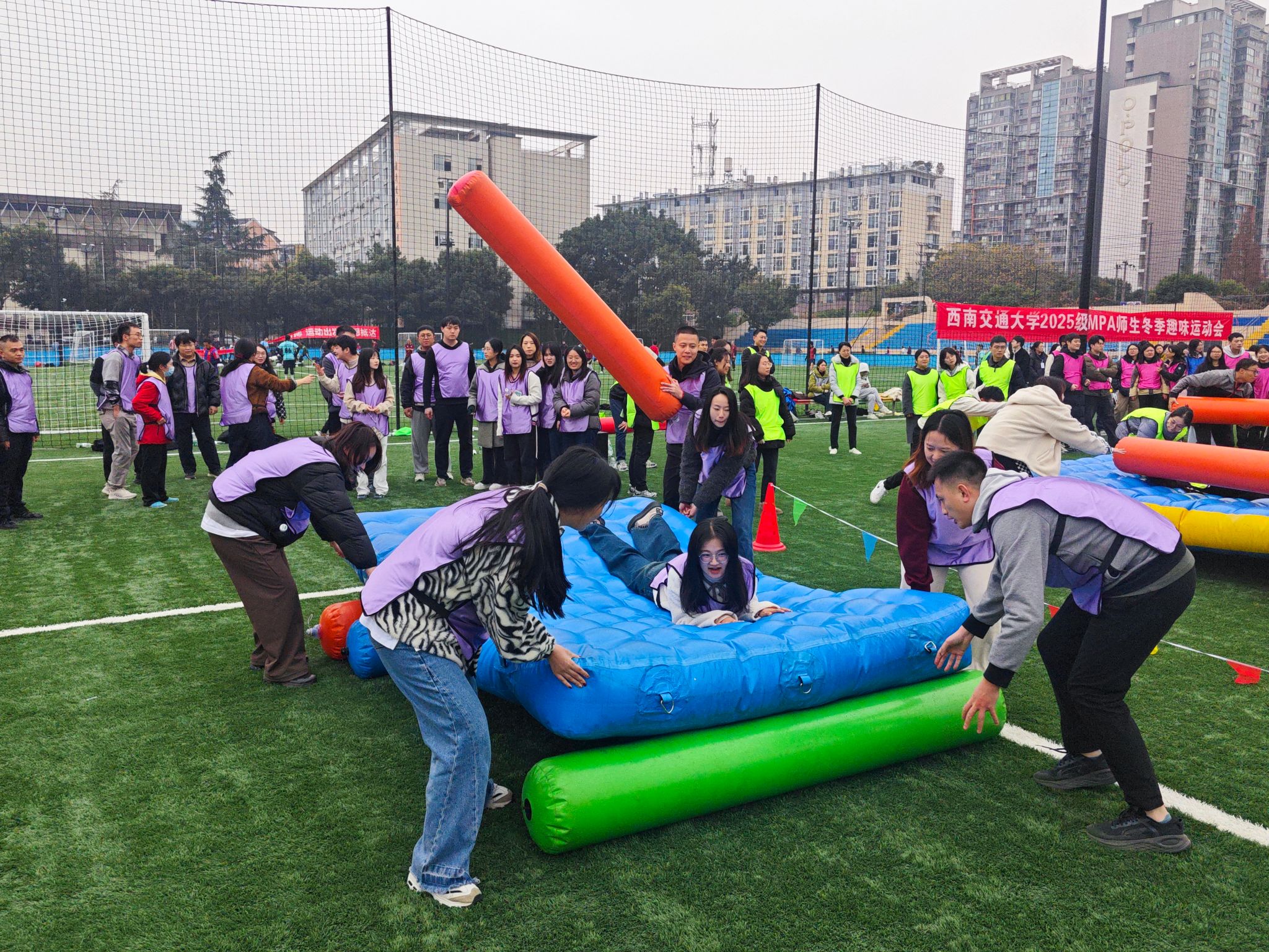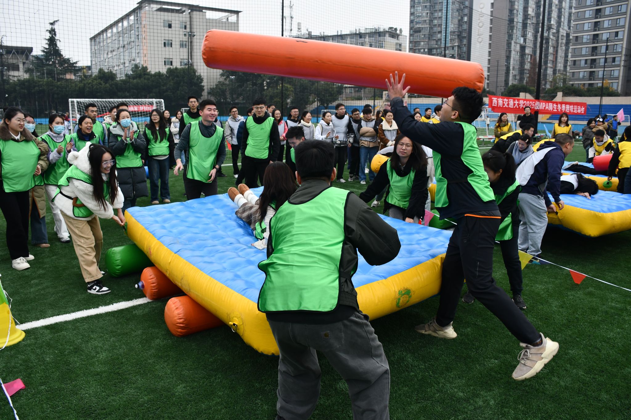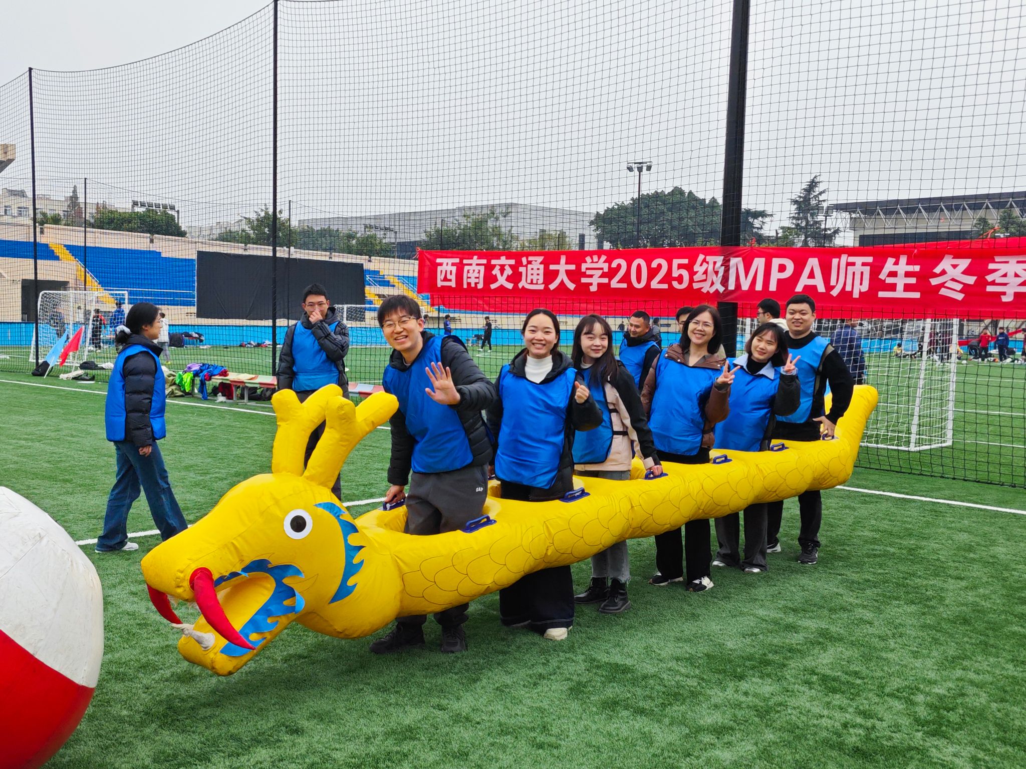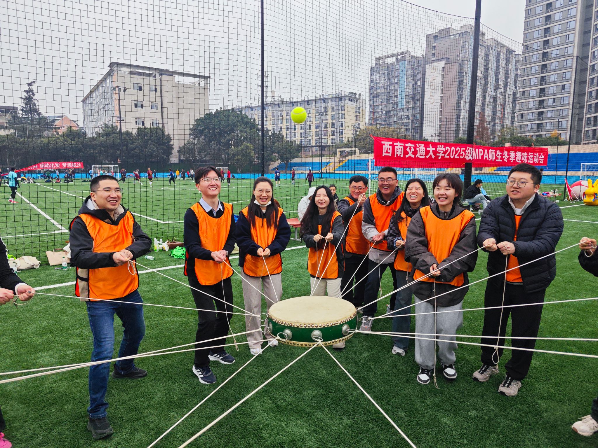 2025级MPA师生冬季趣味运动会在九里校区足球场拉开帷幕。尽管寒意袭人,师生们的参与热情却愈发高涨,这场融合了趣味、协作与互动的运动盛会,在冬日的校园里点燃了活力,也奏响了团结拼搏的青春乐章。