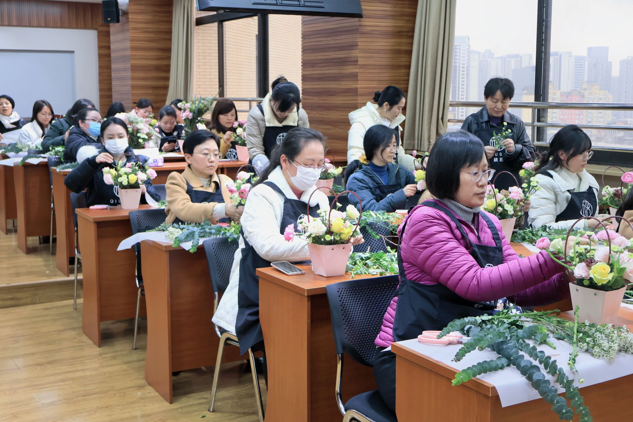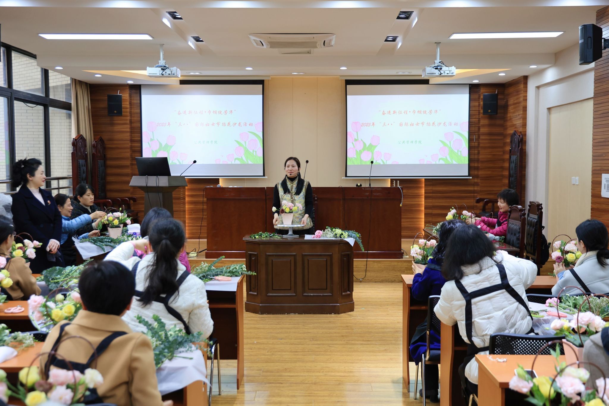 举办了“奋进新征程 巾帼绽芳华”三八妇女节插花活动。学院女教职员工欢聚一堂,在花香缭绕中,用她们的双手,编织属于她们的浪漫与诗意。