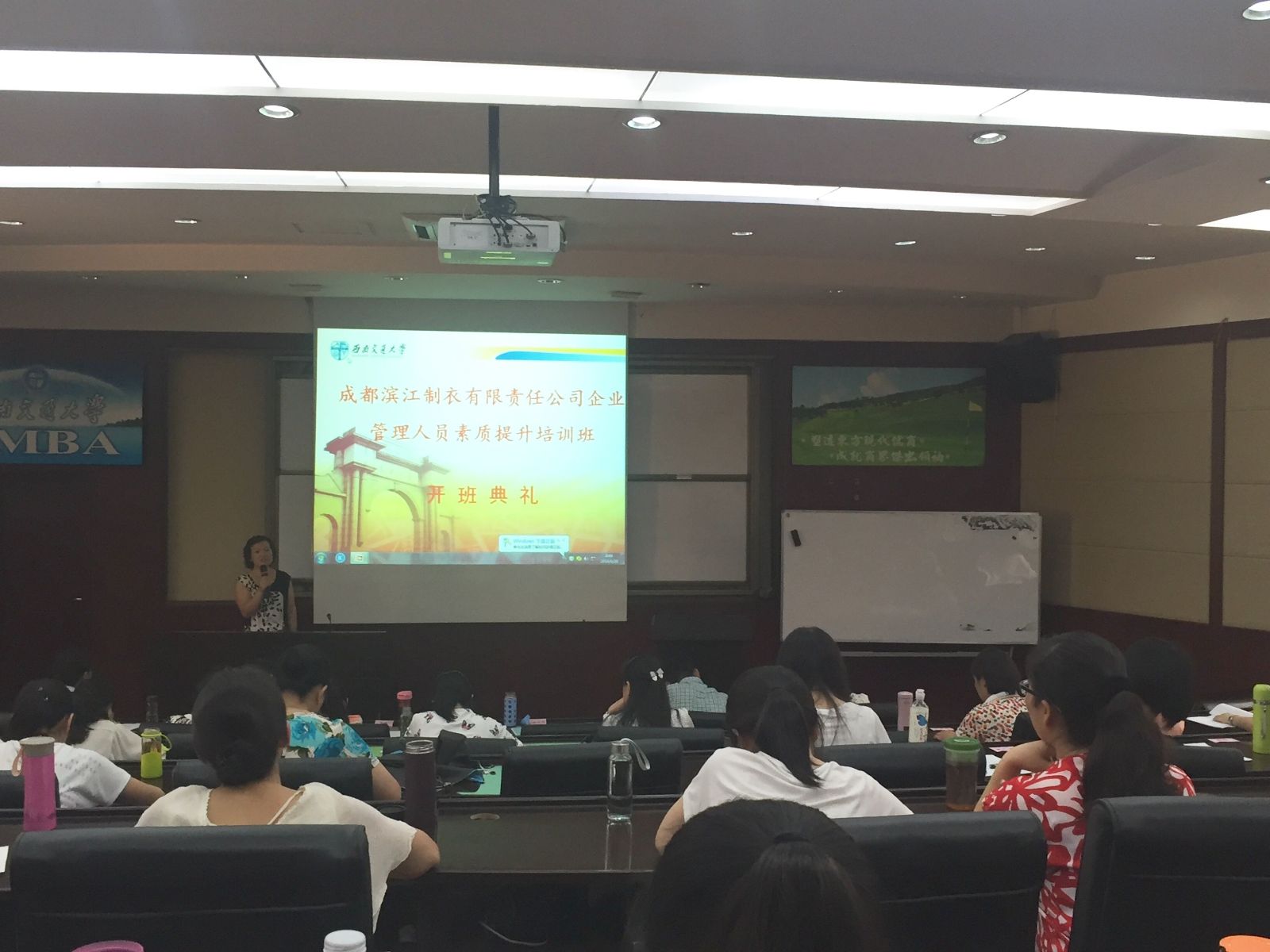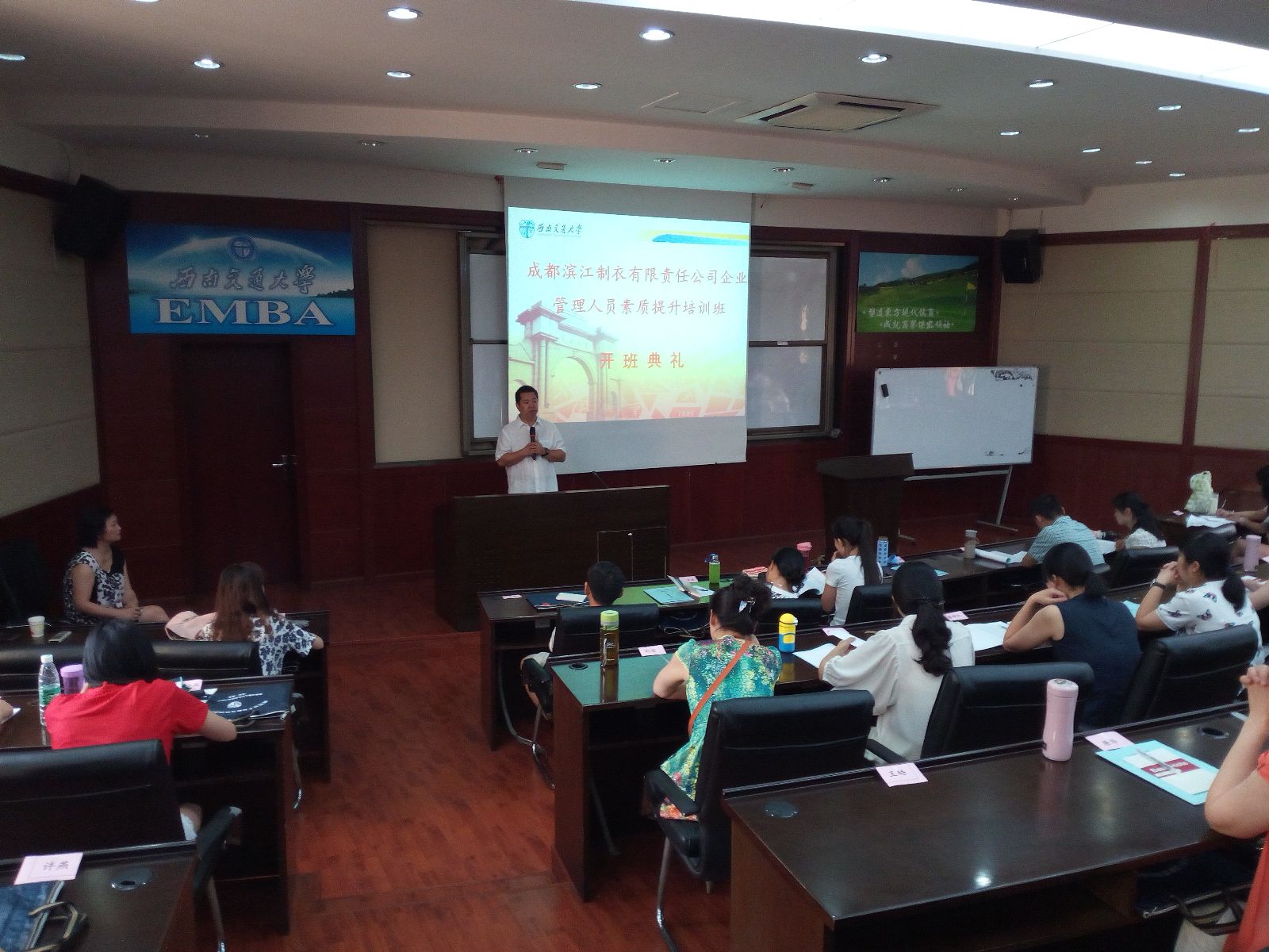 2016年6月20日,由我校干训基地承办的成都滨江制衣有限责任公司企业管理人员素质提升专题培训班在我校顺利开班。优视频 公共管理与政法学院副院长雷叙川、成都滨江制衣有限责任公司党委书记李文莉及来自成都滨江制衣有限责任公司的60名参训学员共同出席了开班典礼。