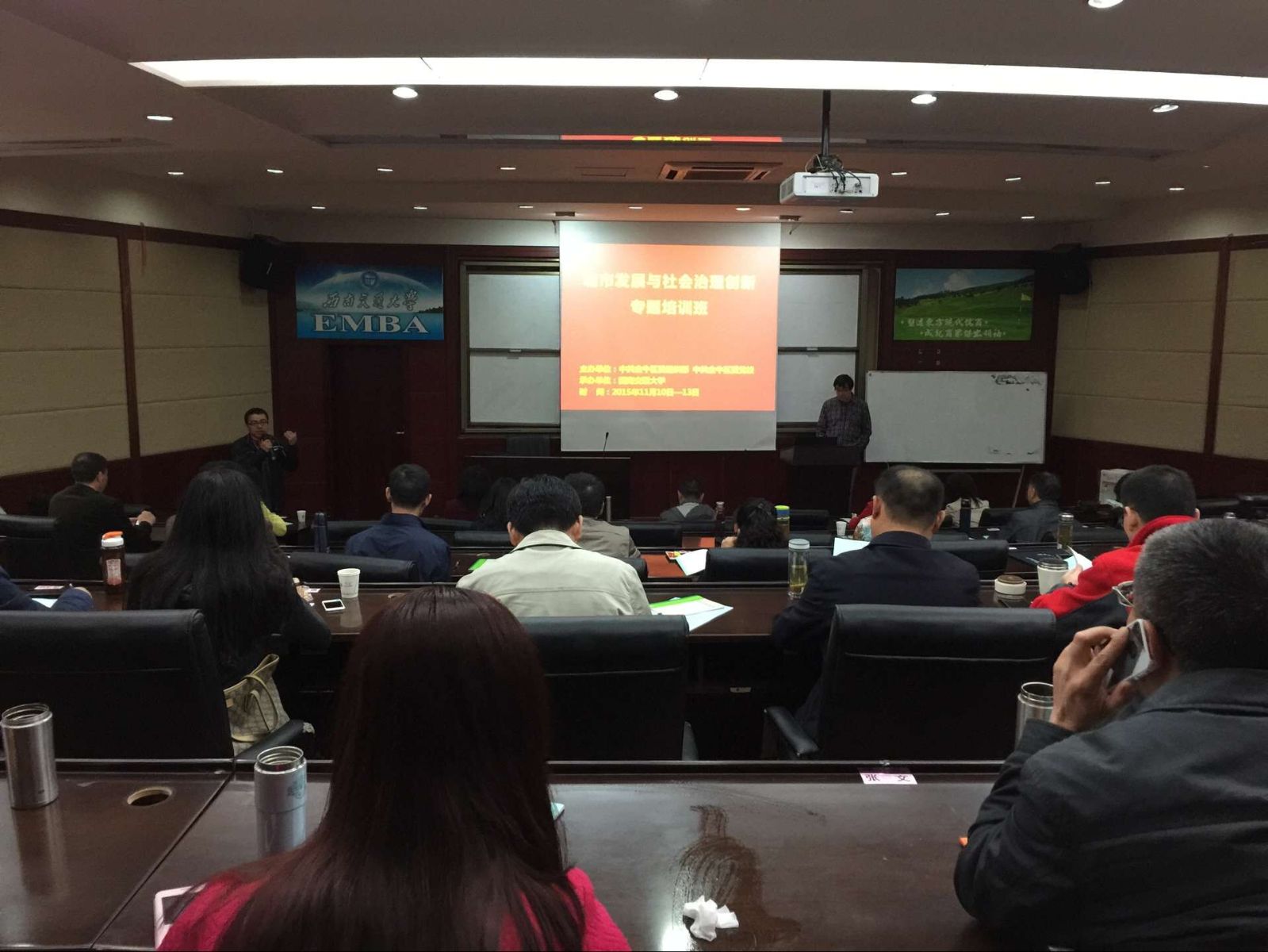 此次培训以“城市发展与社会治理创新”为主题。涵盖文化产业、轨道交通建设、社会治理、创新创业等专题板块,为期4天,有来自我校、成都市委党校、成都市社会科学院等7位专家教授前来授课。